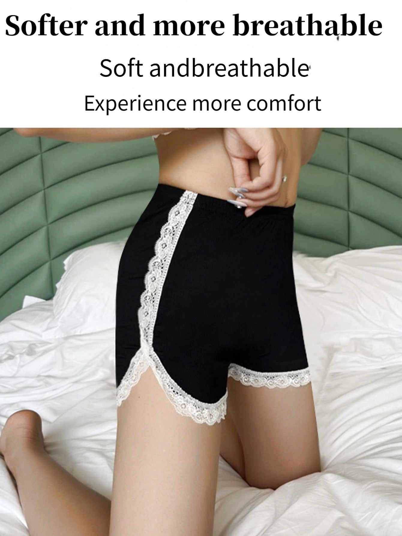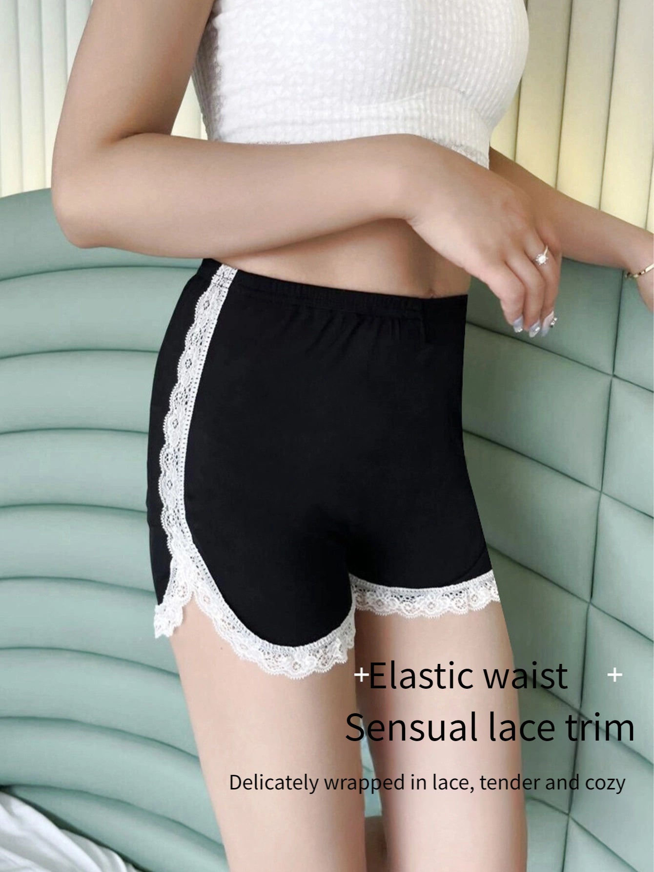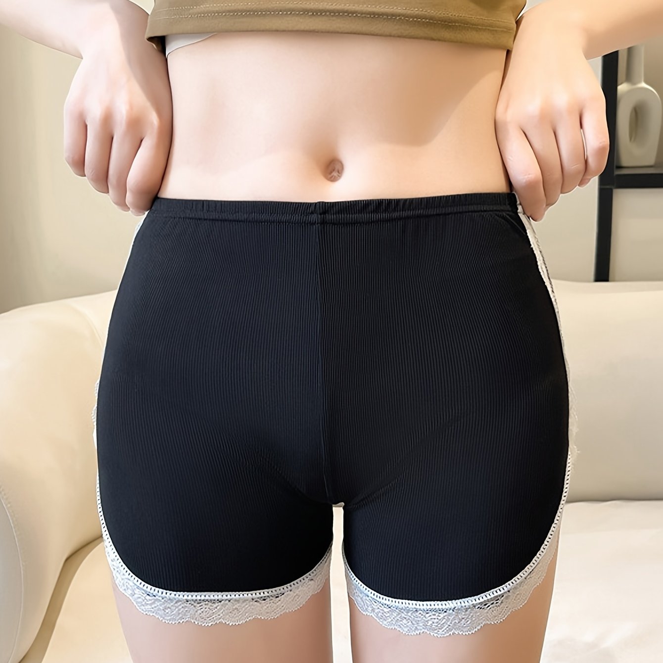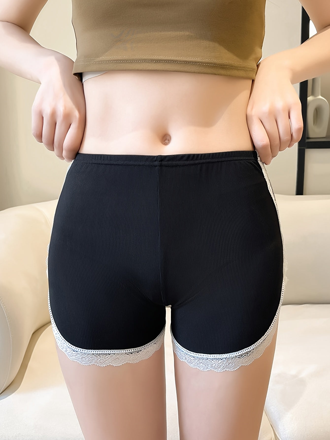 Women's High-Elasticity Safety Shorts - Breathable, Seamless, No-Show with Lace Trim, Black and White, Stretchy Fabric, Ideal for Summer Casual Wear, High Waisted Shorts