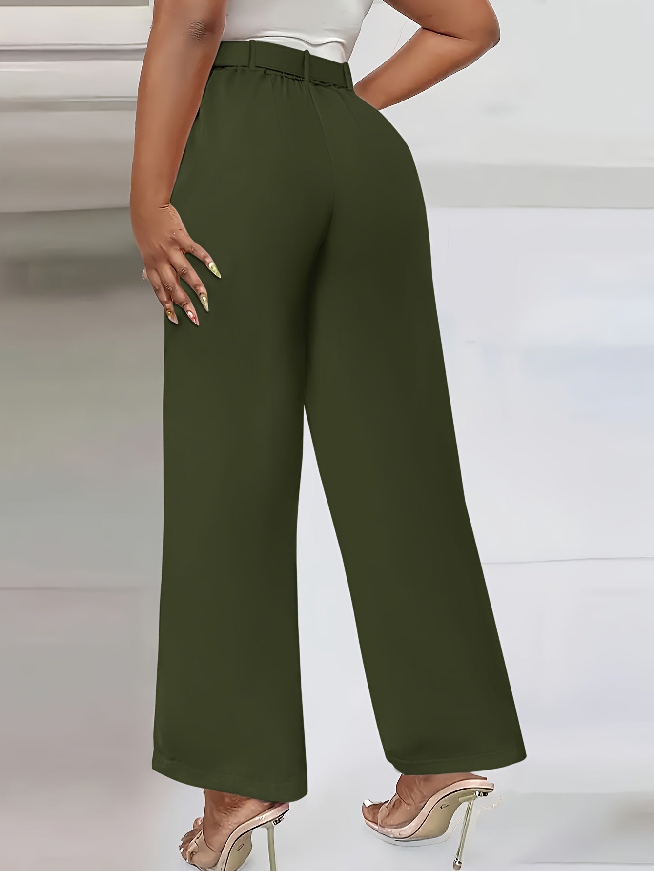 Women'S High-Waist Button-Detail Casual Straight Leg Pants, Solid Color, Polyester, with Belt, for All-Season Woven Trousers