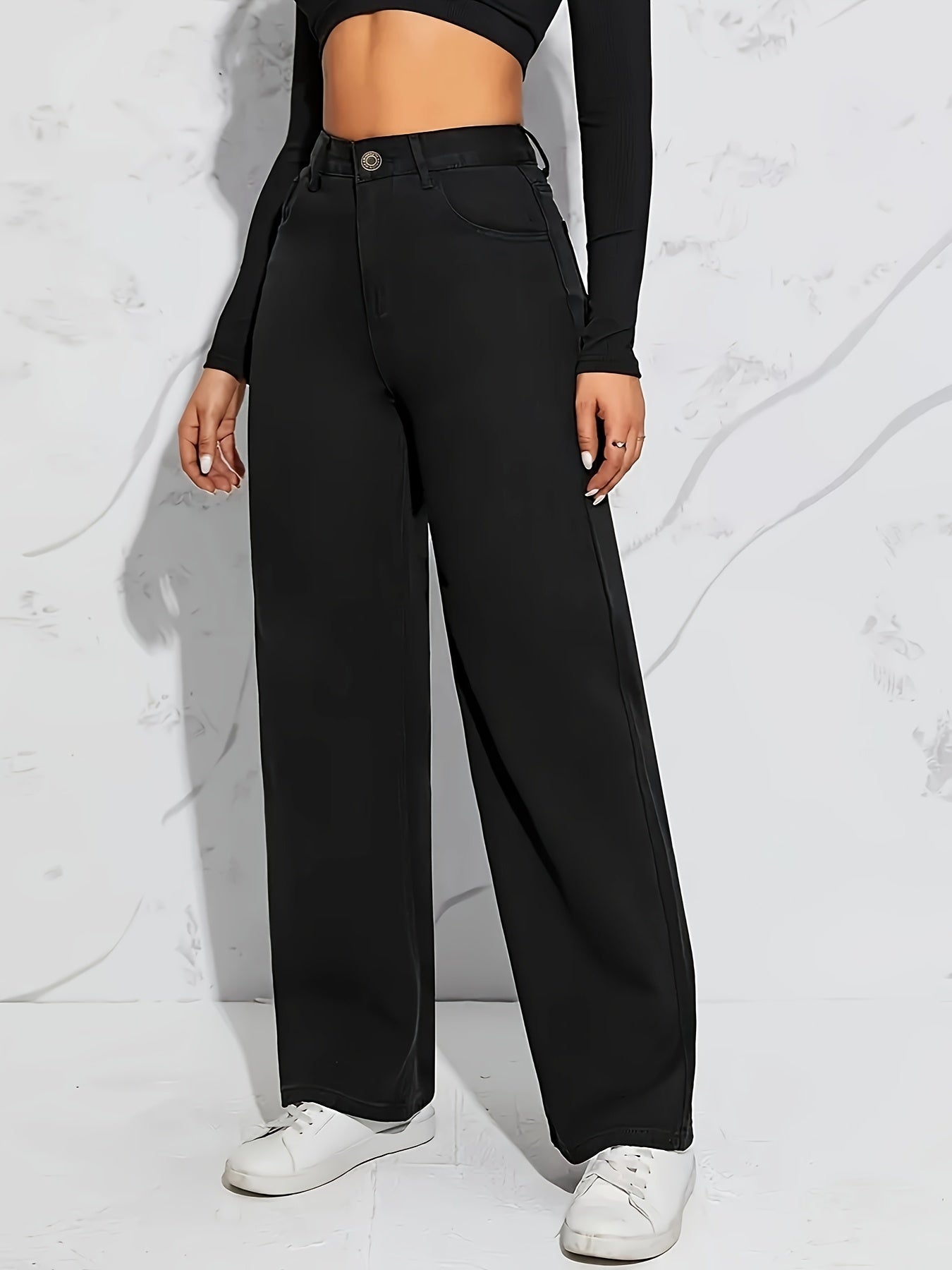 Women's High-Waisted Wide Leg Jeans, Fabric Blend, Polyester, Viscose, Classic Style, Machine Washable, No Stretch, Solid Color, Four Seasons, Zipper Closure, Casual Outwear