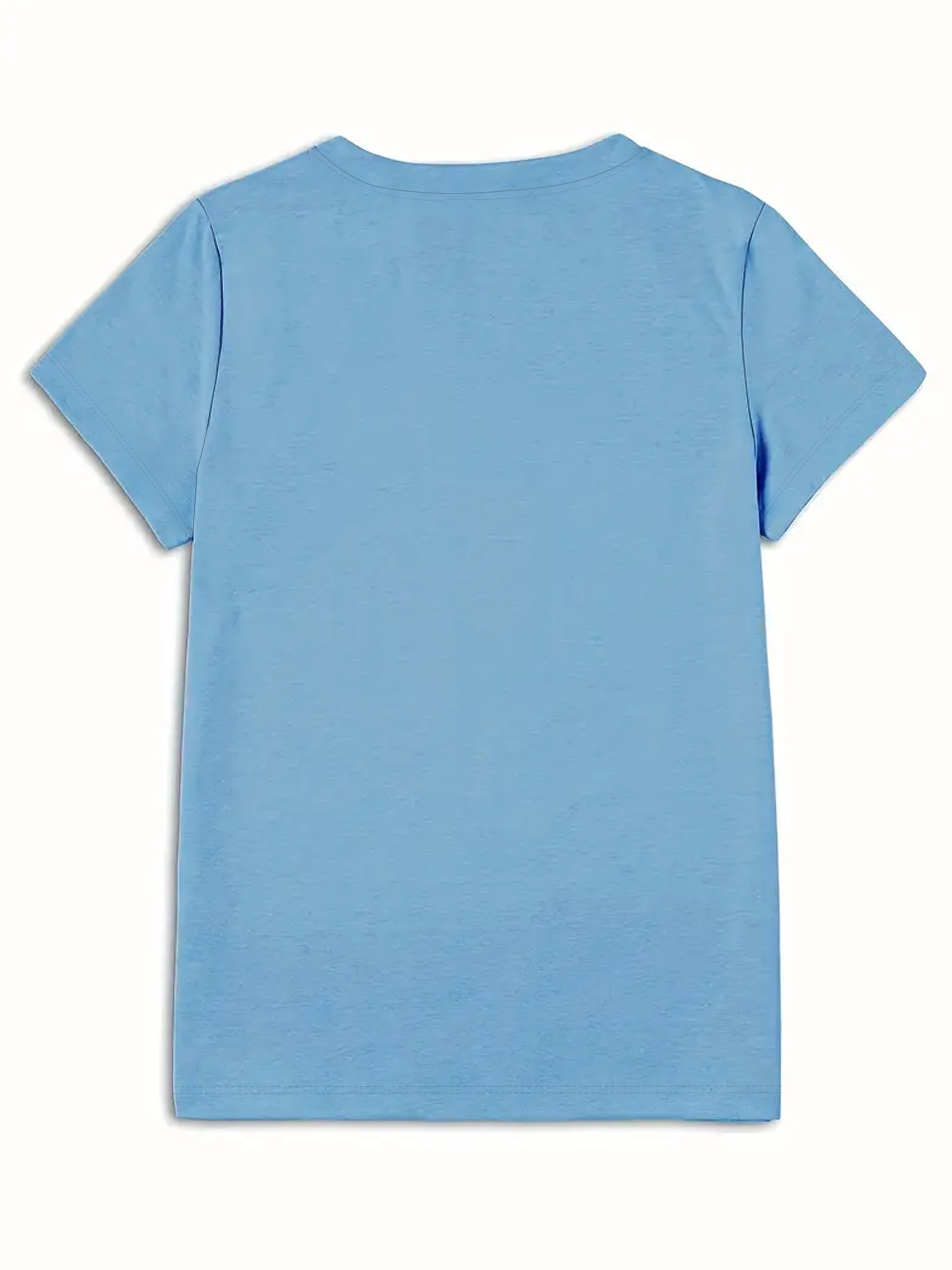Women's Light Blue Yellow Rose Print T-Shirt - Short Sleeve Crew Neck Casual Top with Medium Stretch, Machine Washable & Breathable Fabric for All-Season Comfort, Relaxed Style, Graphic Tee, Stretchy Material, Printed Shirt,