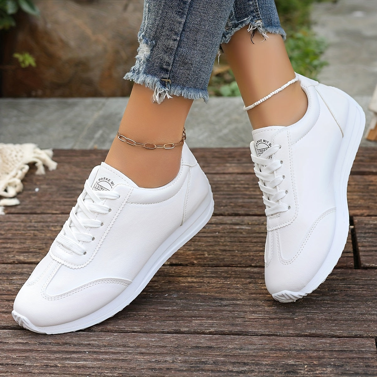 Women's Lightweight Casual Sneakers - White Synthetic Leather, All-Season Comfort, Stability Support, Breathable Fabric Lining, TPR Sole, Perfect for Casual Attire, Cute Shoes