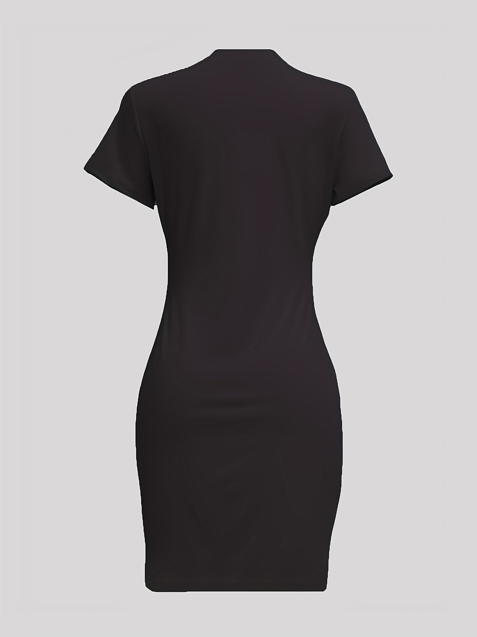 Women'S Milano Italy Print Bodycon Dress, Polyester 92% Elastane 8% Knit Fabric, High Stretch Geometric-Pattern, Short Sleeve Round Neck, Plus Size, Sports Style for Spring/Summer/Fall - 180g/m²