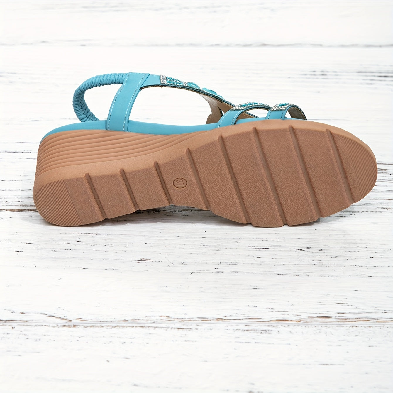 Women'S Rhinestone-Embellished Slip-On Wedge Sandals - Adjustable Straps, Open-Toe Summer Shoes with Thick Platform Heel for Casual Formal Occasions, Dressy Shoes, Formal Footwear, Comfortable Insole, Synthetic Cover Footwe