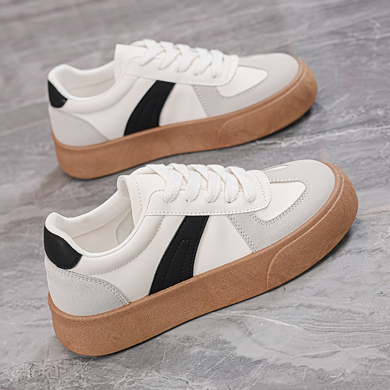 Women'S Striped Lace-Up Sneakers, Low Top Casual Shoes, All-Season Comfortable Lightweight Footwear, Plain Toe, Polyurethane Upper, Fabric Inner, Rubber Sole, Fabric Insole