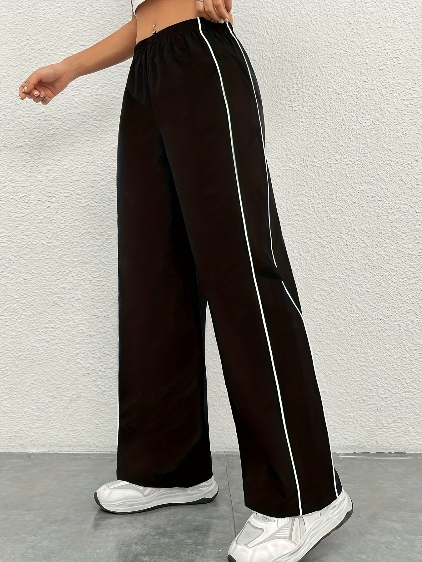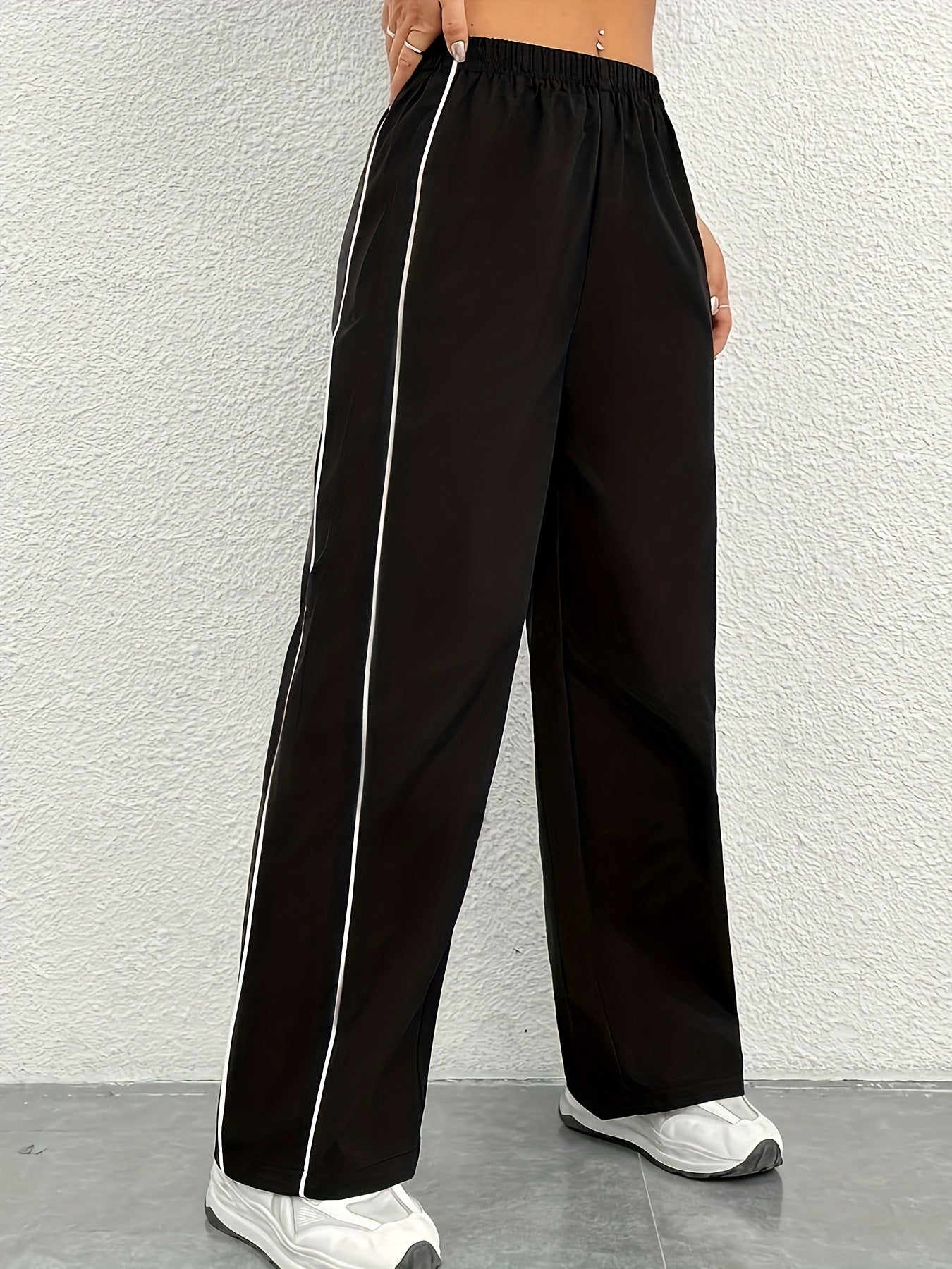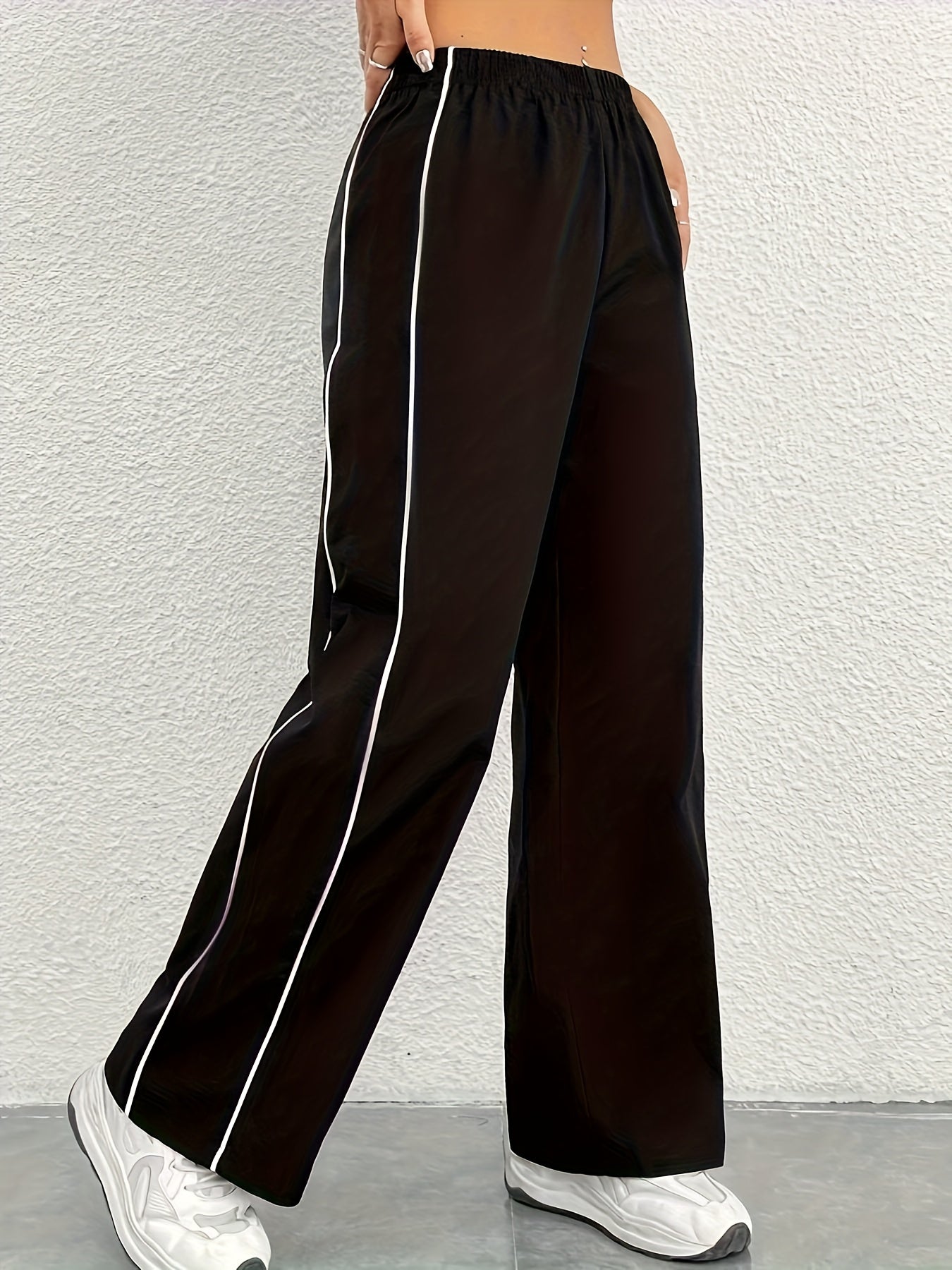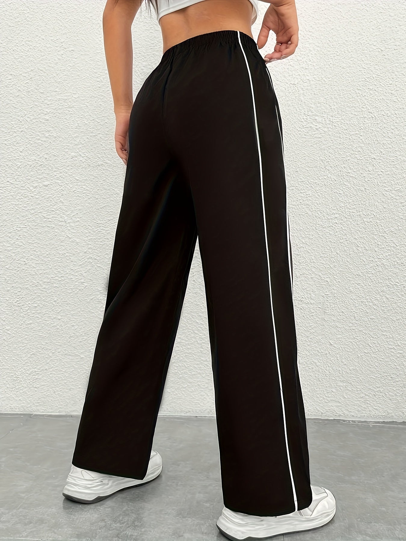 Women's Stylish Black & White Side Stripe Straight-Leg Joggers - 100% Polyester, Machine Washable, All-Season Casual Athletic Pants for Adults