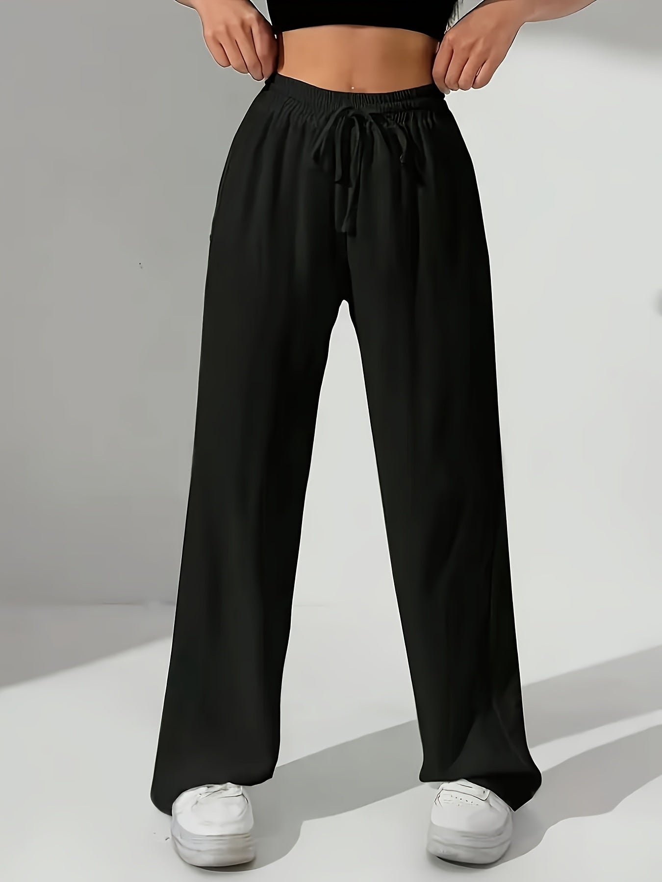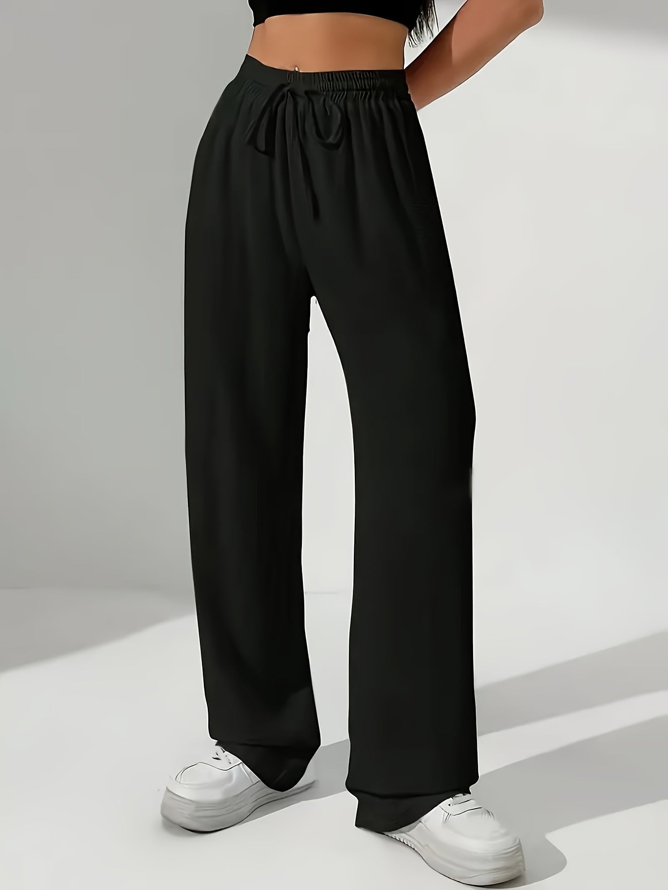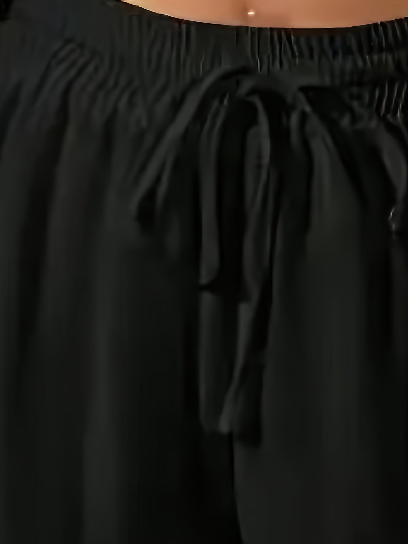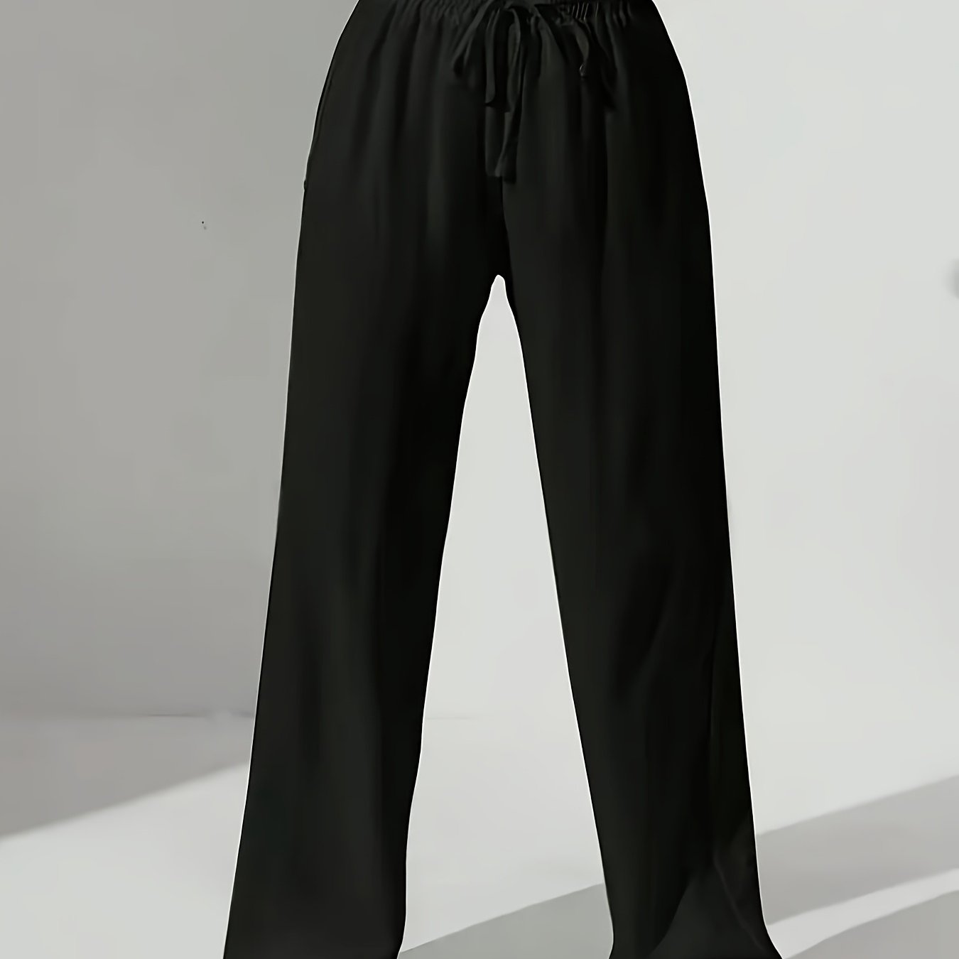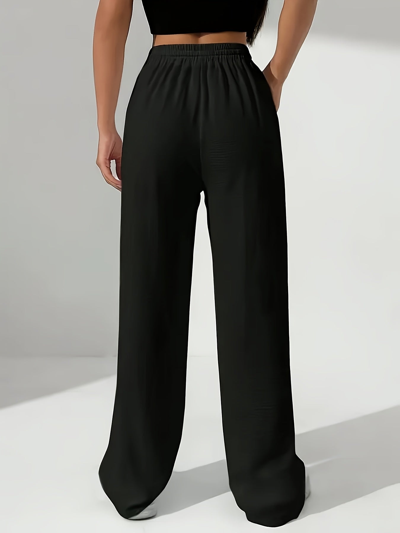 Women'S Stylish Black Wide-Leg Pants with Elastic Waistband - Casual All-Season Drawstring Pockets, Perfect for Weekends and Casual Attire, Casual Attire Pants|Wide Leg Fashion|Elastic Waistband Pants