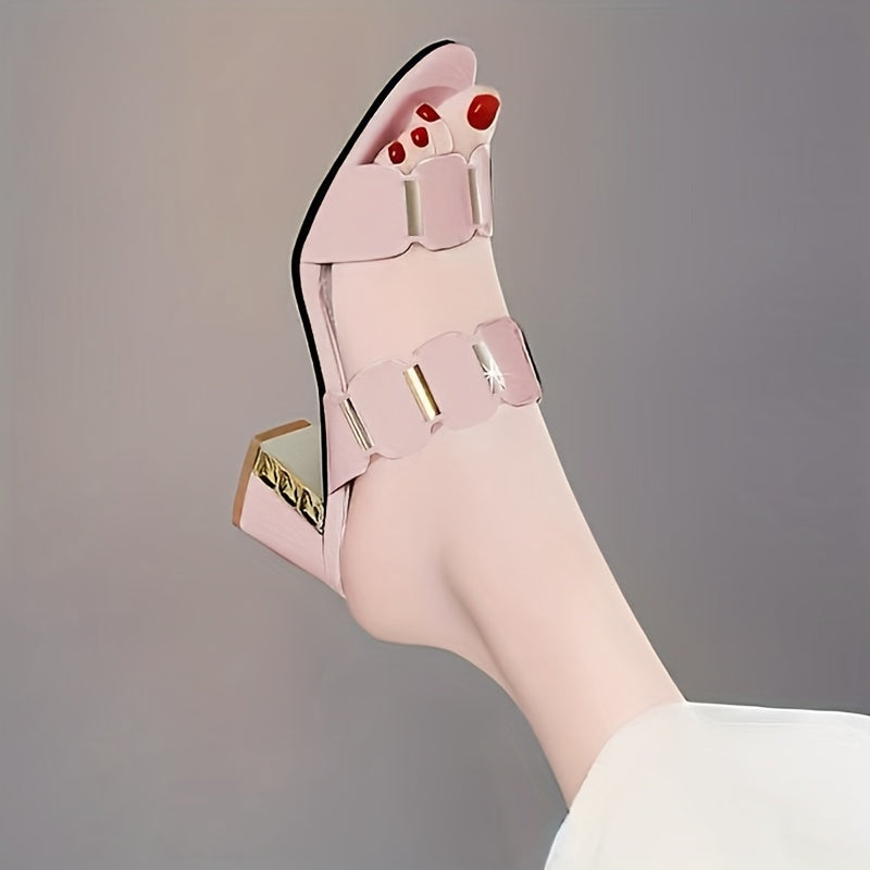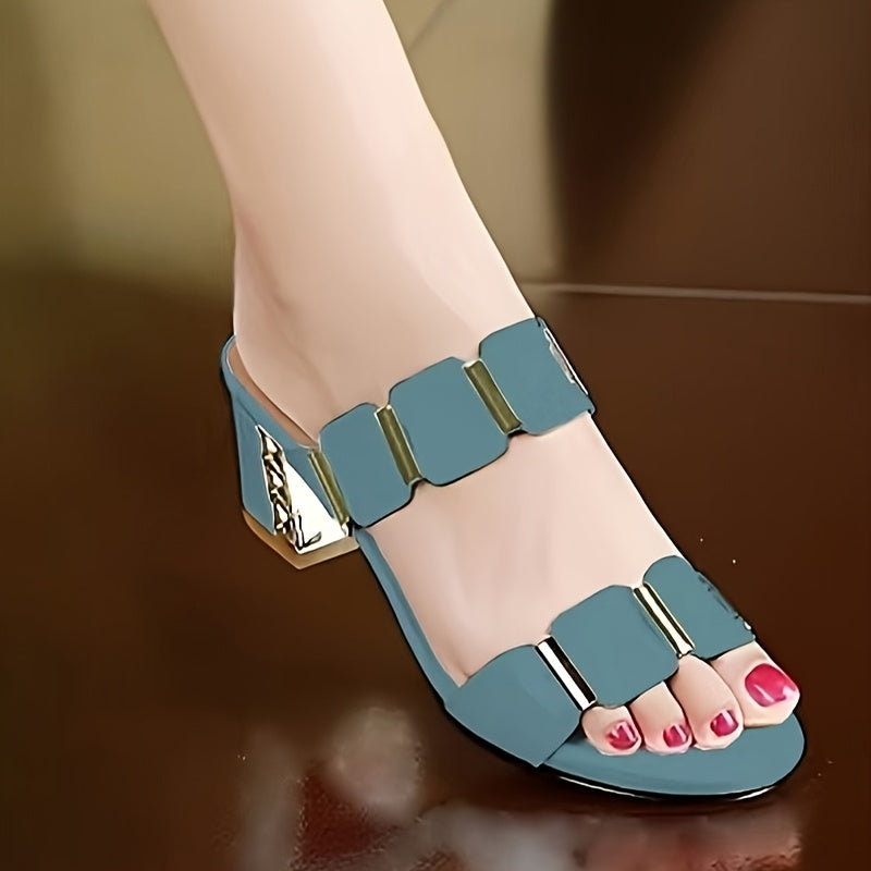 Women'S Stylish Summer Slide Sandals - Mid-Heel, Open Toe, Slip-On Design with Rubber Sole and EVA Insole, Comfortable PU Upper - Perfect for Casual or Dressy Outfits, Strappy Sandal