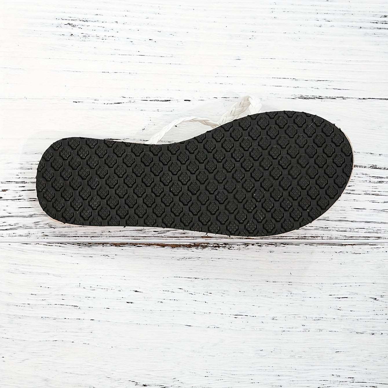 Women'S Summer Flat Sandals - Casual Beach Thong Flip-Flops with Braided Straps, White Open-Toe Design, EVA Sole & Insole, Perfect for Casual Attire, Strappy Sandals