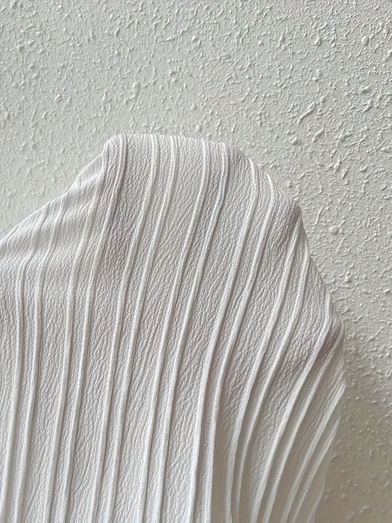 Women's Trendy Bell Sleeve Ribbed Blouse - White Crew Neck, Flared Sleeves, Casual Spring/Summer Top, Breathable Polyester Blend, Perfect for Casual Attire, Versatile Fashion | Ribbed Texture Shirt | Stretchable Fabric
