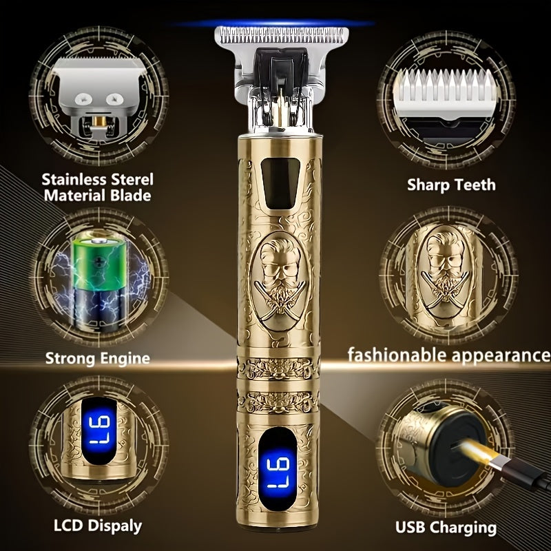 YAIAWISU Men's Cordless Electric Hair Clippers & Beard Trimmer with LCD Screen, USB-Rechargeable Cordless Grooming Kit, T-Blade Trimmer with Guide Comb Suitable for Hair, Shaving, and Scalp Trimming