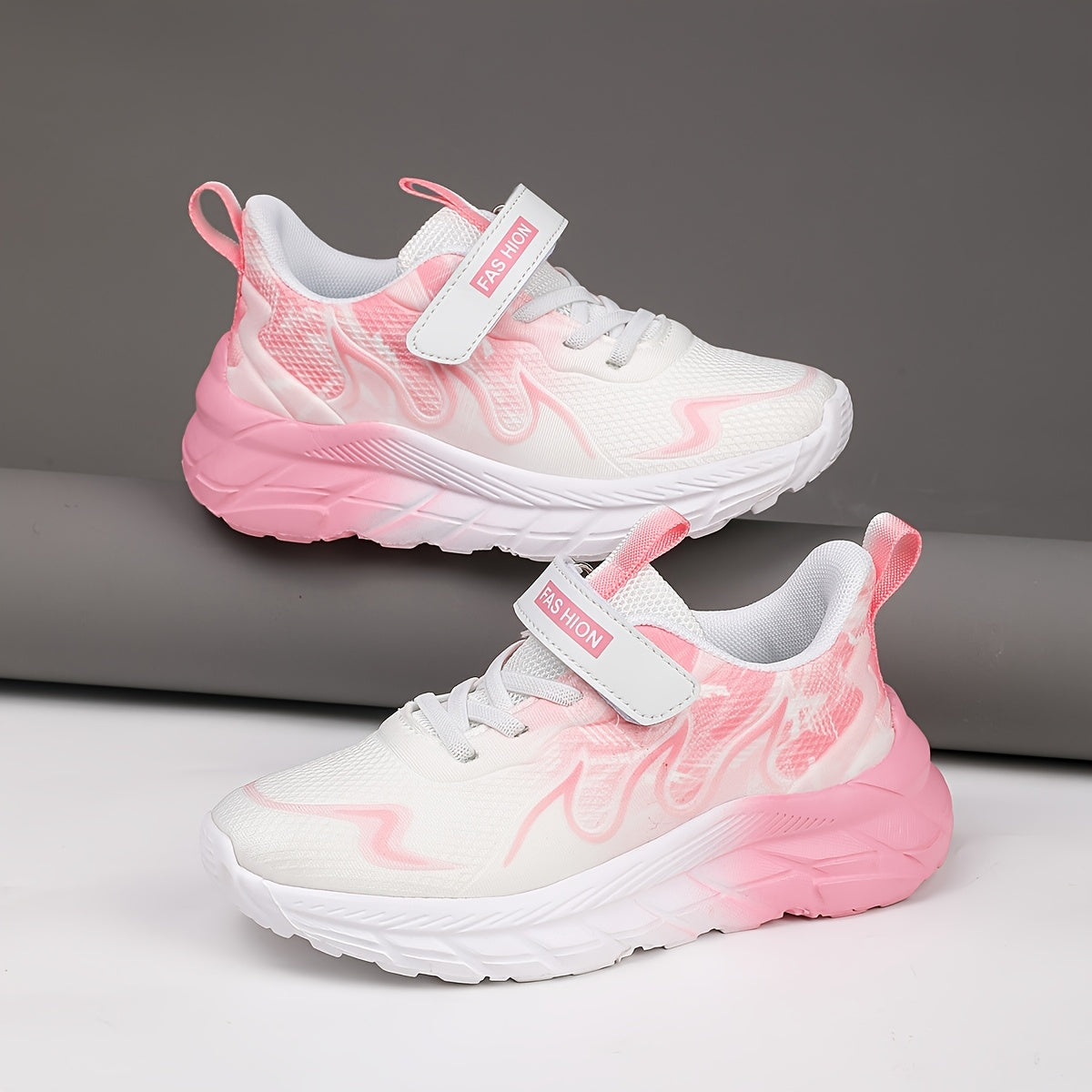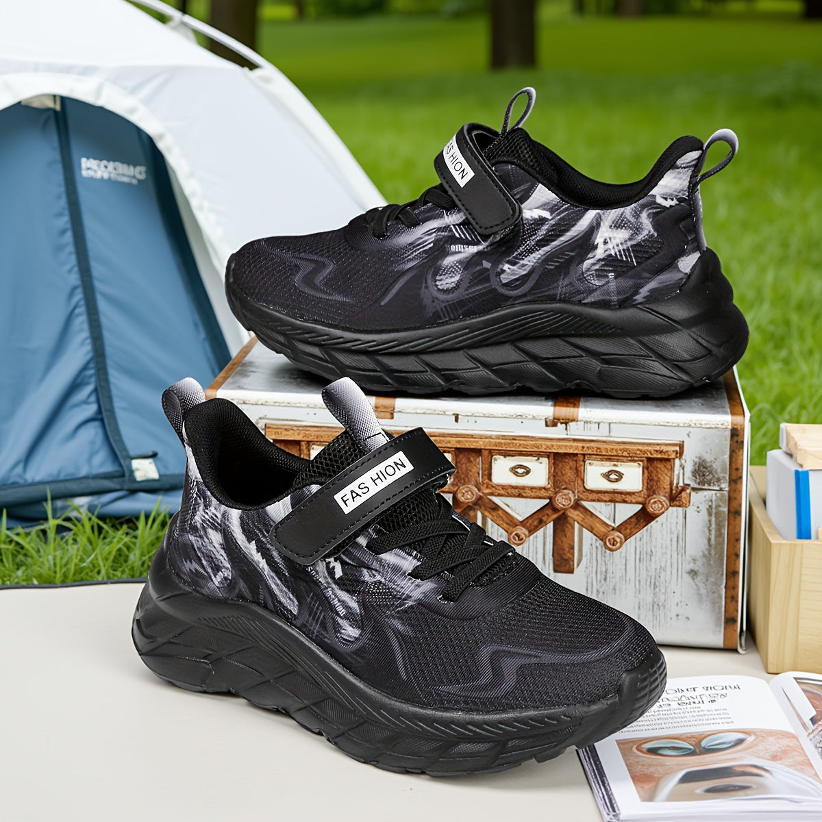 Youngsters' Low-Top Breathable Mesh Running Shoes with EVA Sole - Lightweight Comfortable Casual Outdoor Sneakers, White with Black Accents & Hook-and-Loop Closure for Boys and Girls, Kid Shoes, Youngsters Sports Footwear, St
