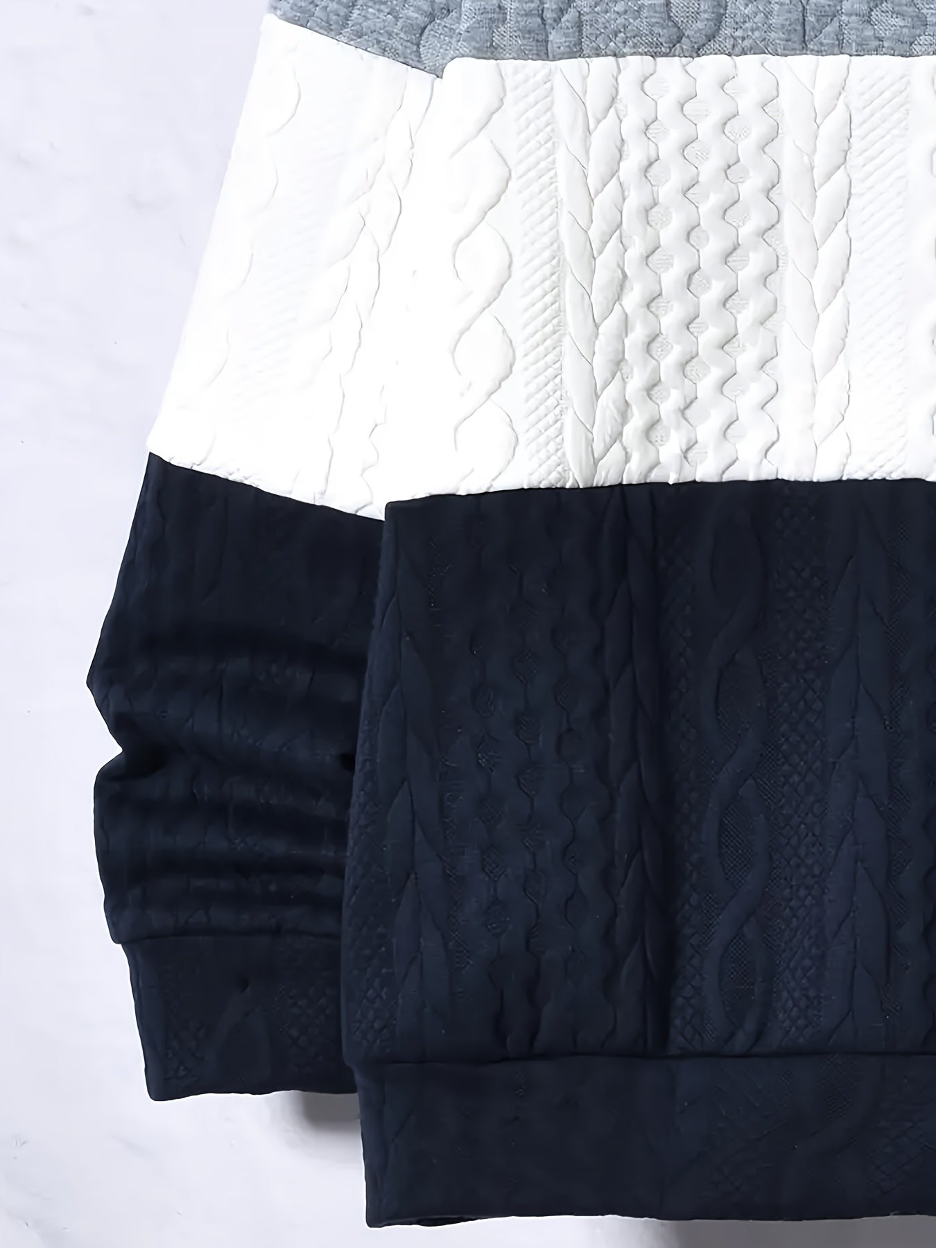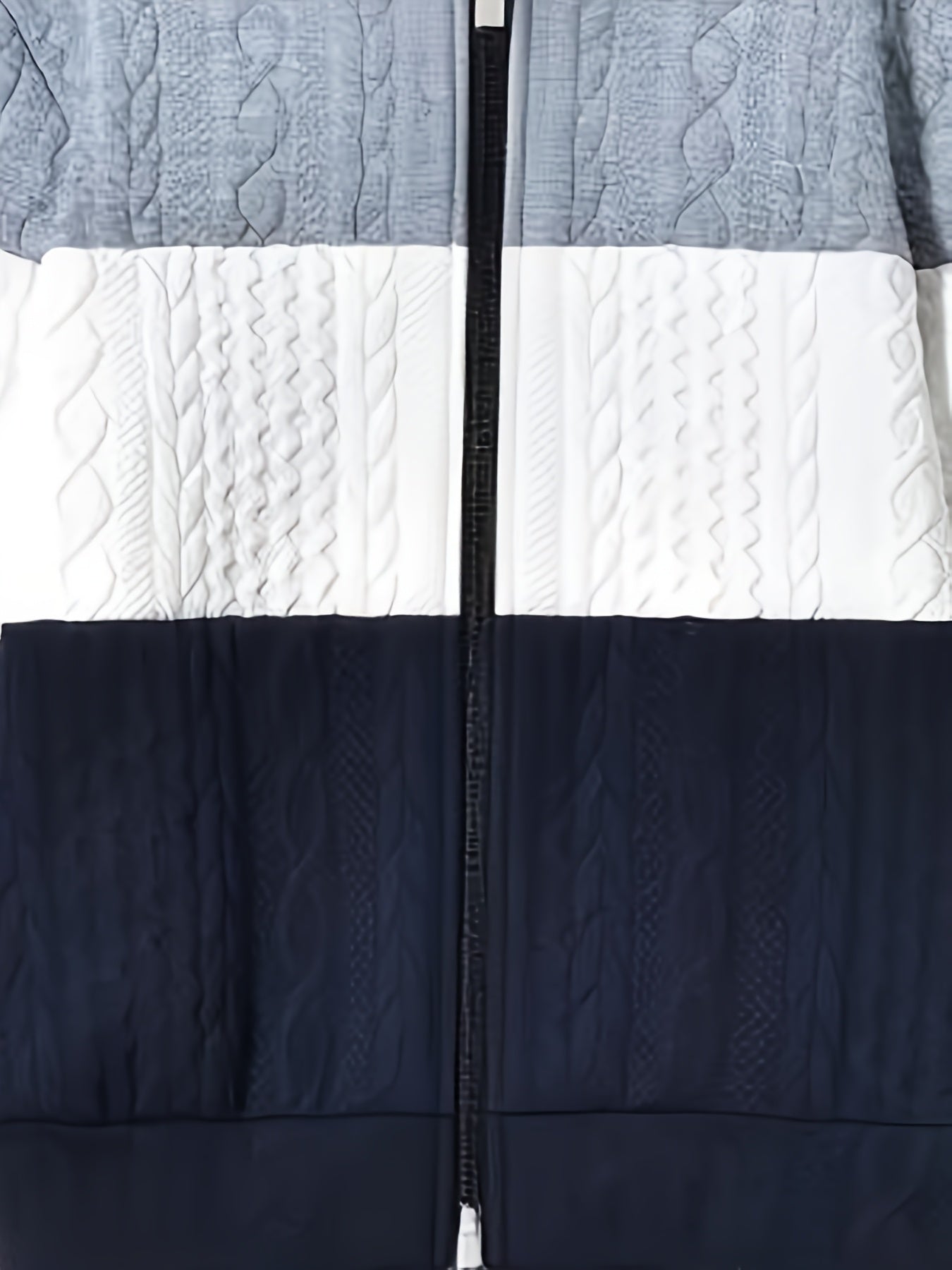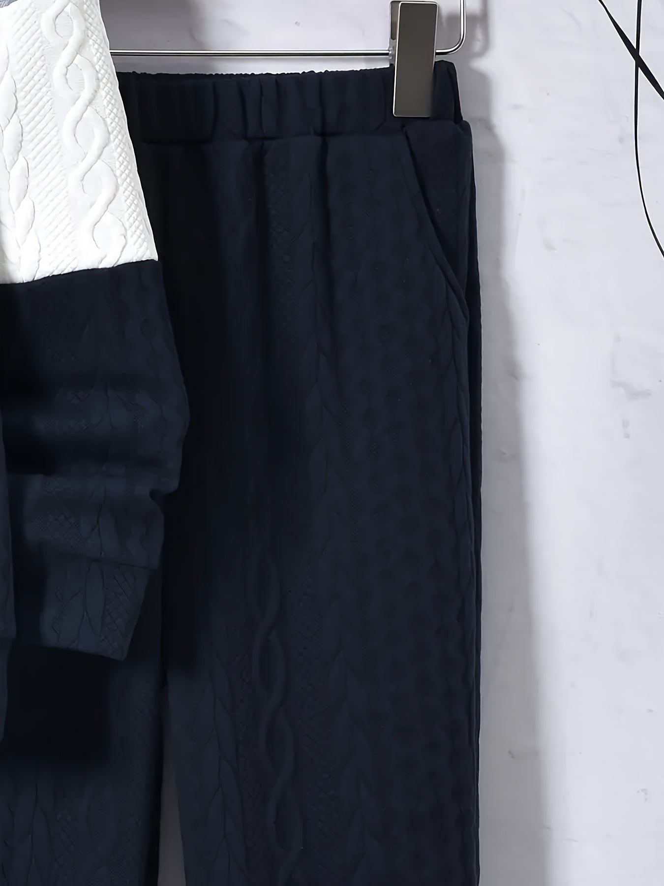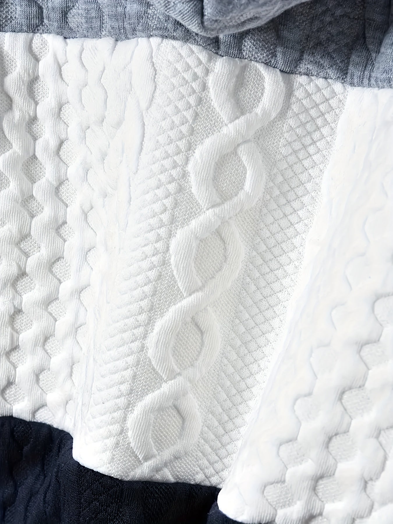 Youth 's Fashion Thickened Jacquard Fabric Grey White Navy Contrast Stitched Hoodie Sweatshirt + Comfortable Drawstring Casual Pants Two-Piece Set, Perfect for Outdoor Activities, Perfect for Outdoor