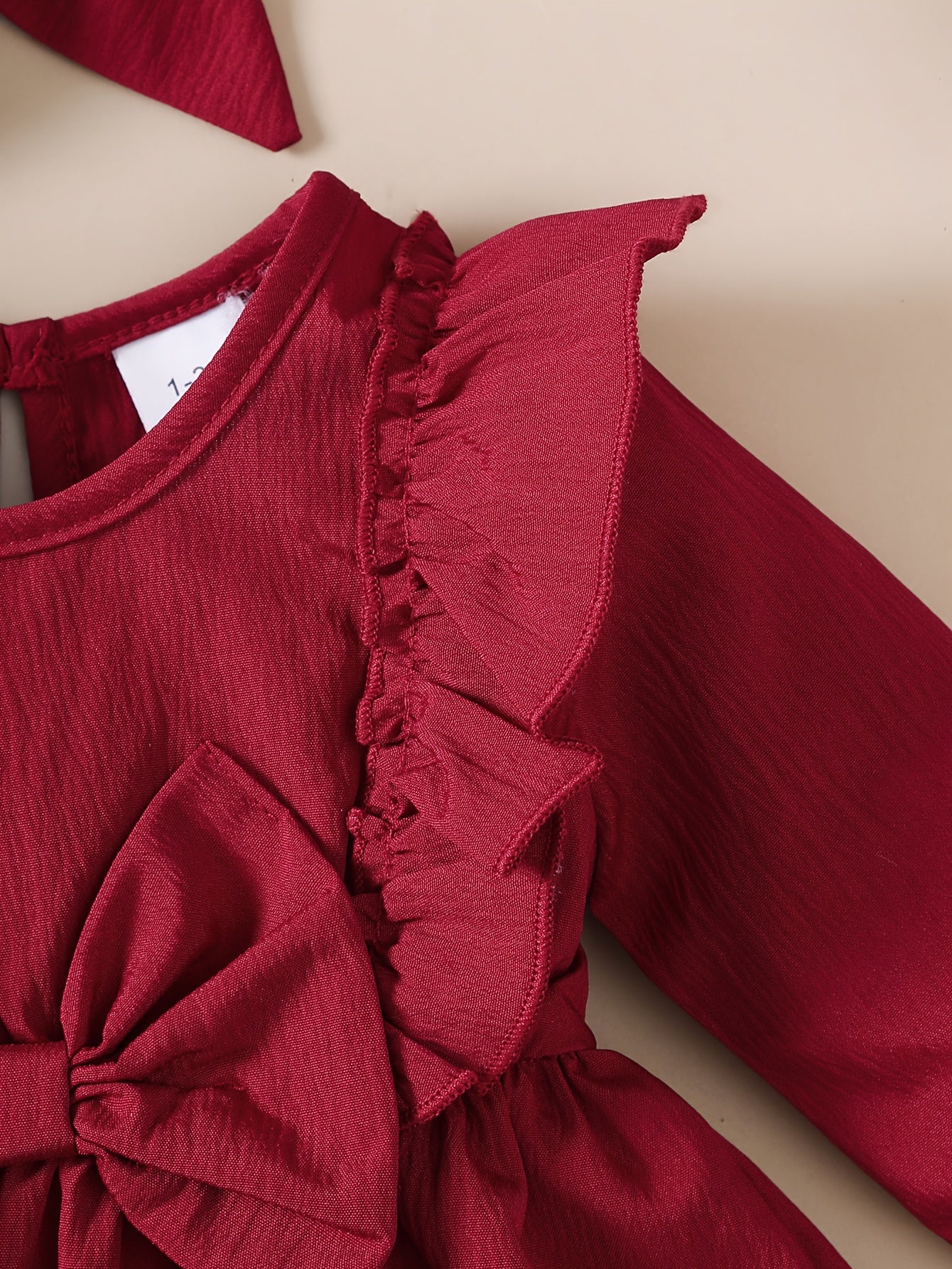1-18 ամսական աղջիկների կարմիր զգեստ | Սուրբ Ծնունդ, Նոր Տարի, Տոնական և տոնական զգեստ գլխակապով, արքայադստեր ոճով, աշուն-ձմեռ հավաքածու, կլոր վզնոցով, երկար թևքերով, մինչև ծնկները, լայնացված եզրով