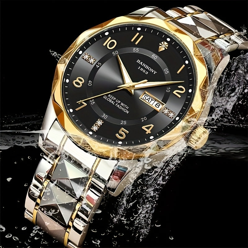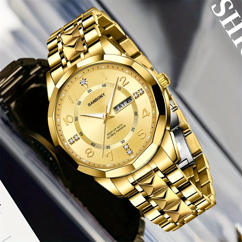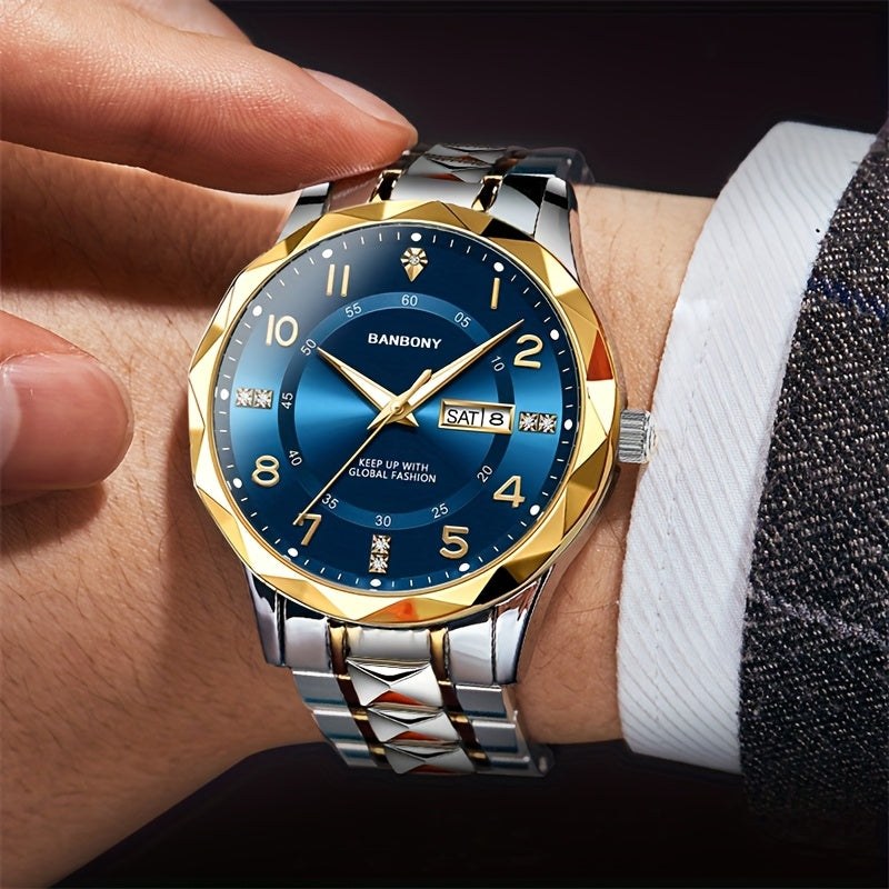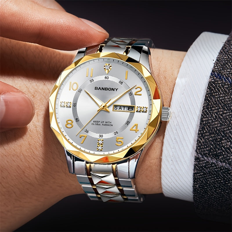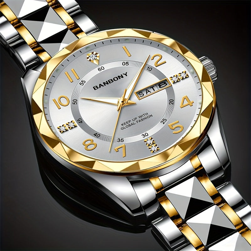 1 New BANBONY Brand Unisex Stainless Steel Quartz Watch with HD Scratch-Resistant Rhinestone-Embellished Simple Digital Round Dial, Luminous Display Date Calendar Battery-Powered Multifunctional Fully Automatic Wristwatch for