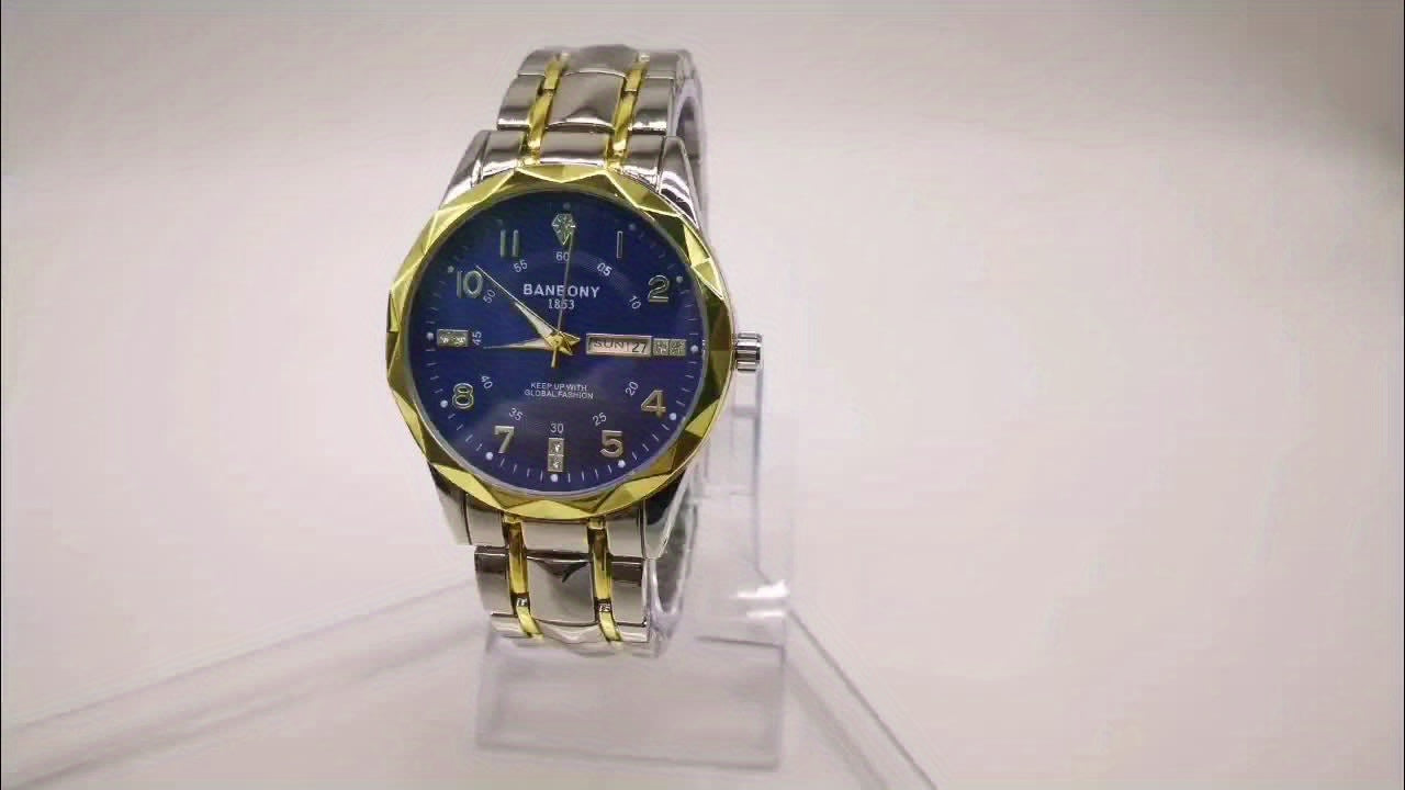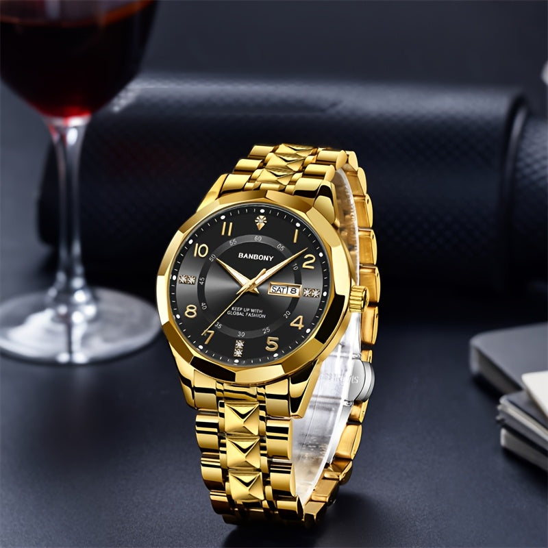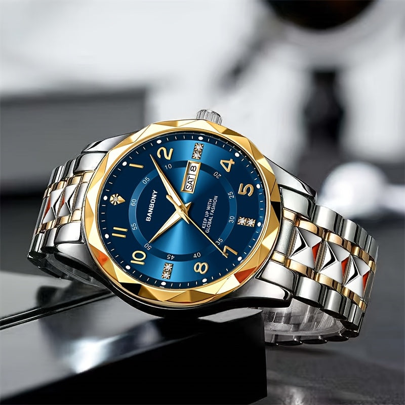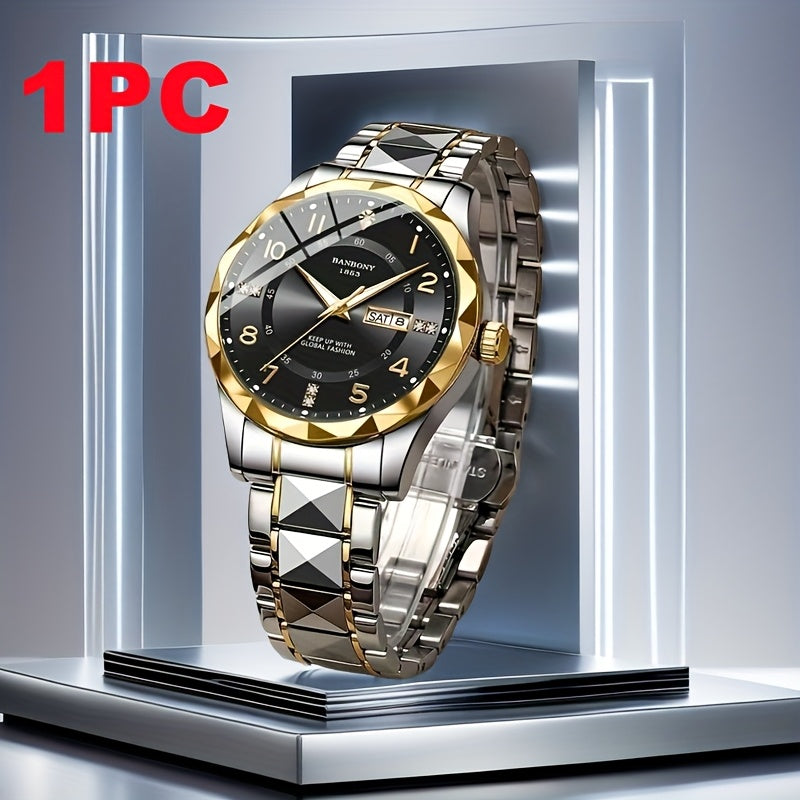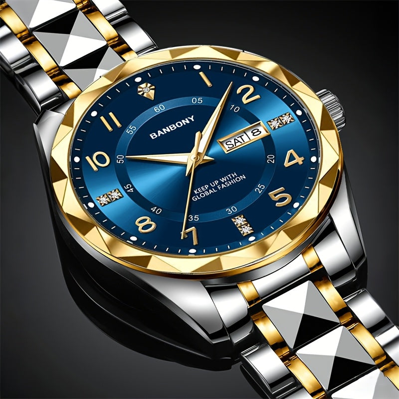 1 New BANBONY Brand Unisex Stainless Steel Quartz Watch with HD Scratch-Resistant Rhinestone-Embellished Simple Digital Round Dial, Luminous Display Date Calendar Battery-Powered Multifunctional Fully Automatic Wristwatch for