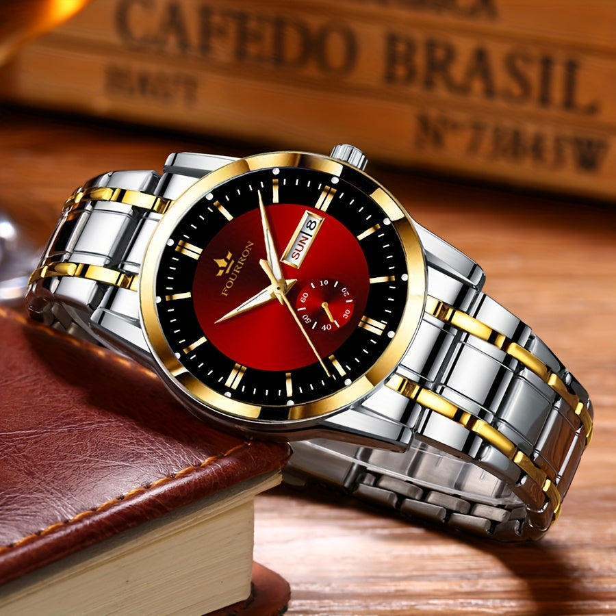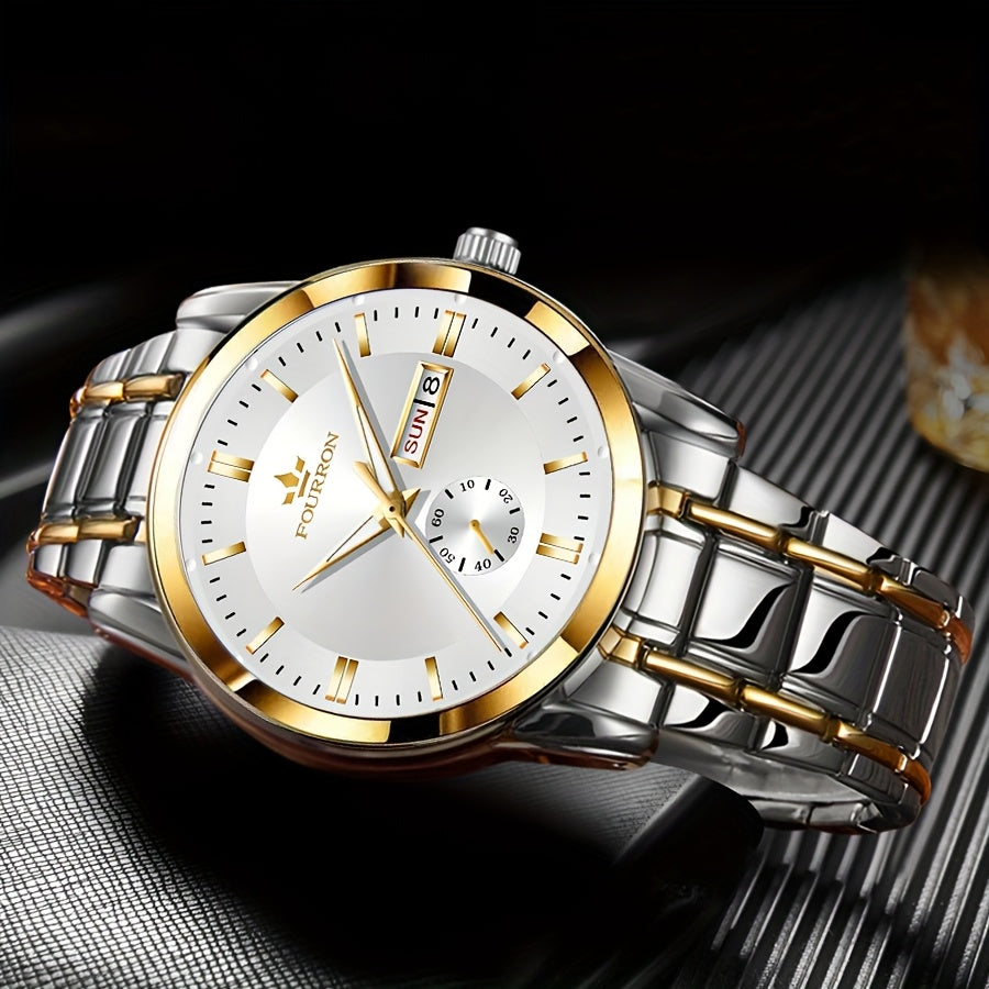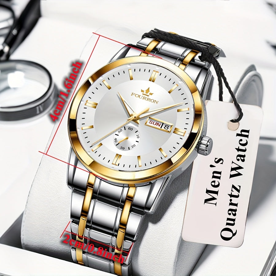 1 New Brand Men'S Luxury Automatic Quartz Watch with Stainless Steel Strap, Blue Dial, Date Display, and Luminous Hands - Waterproof, Stylish for Casual Attire, Perfect Gift for Holidays and Birthdays, Casual Wear Watch | Ele