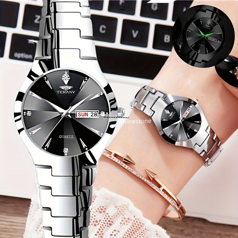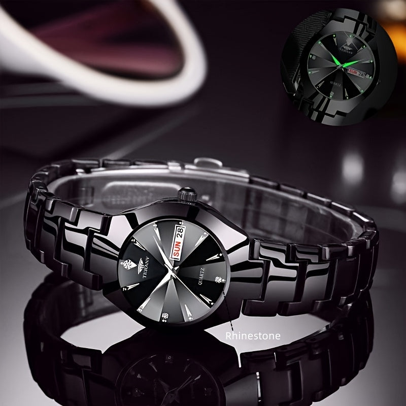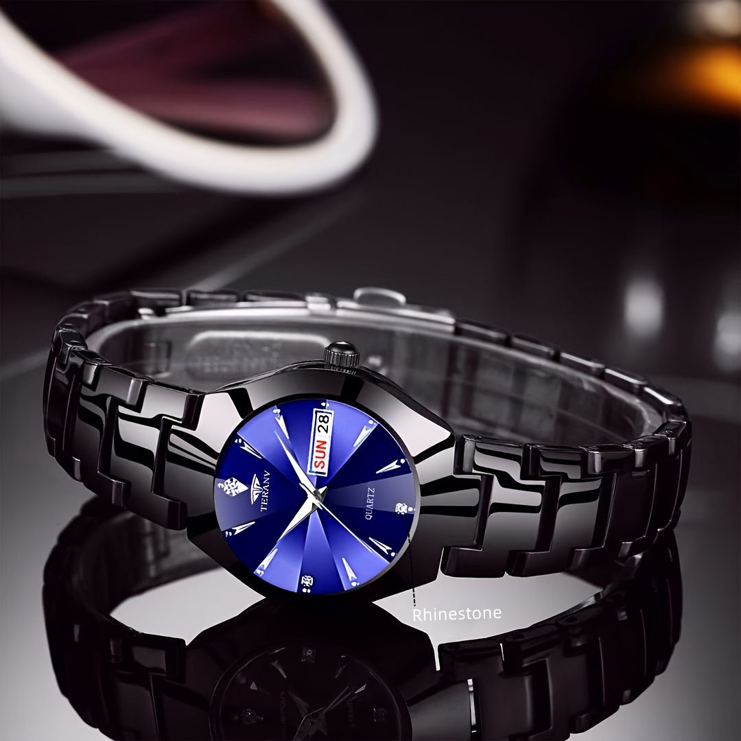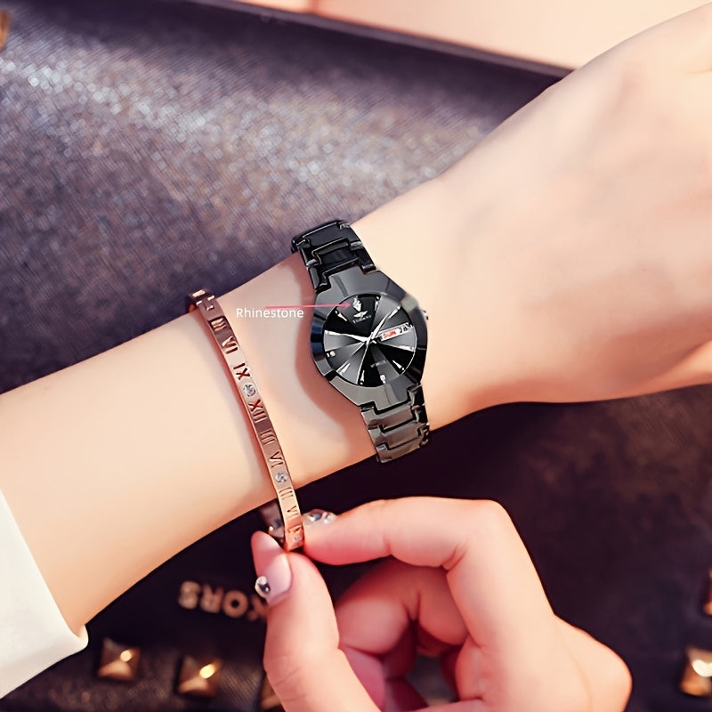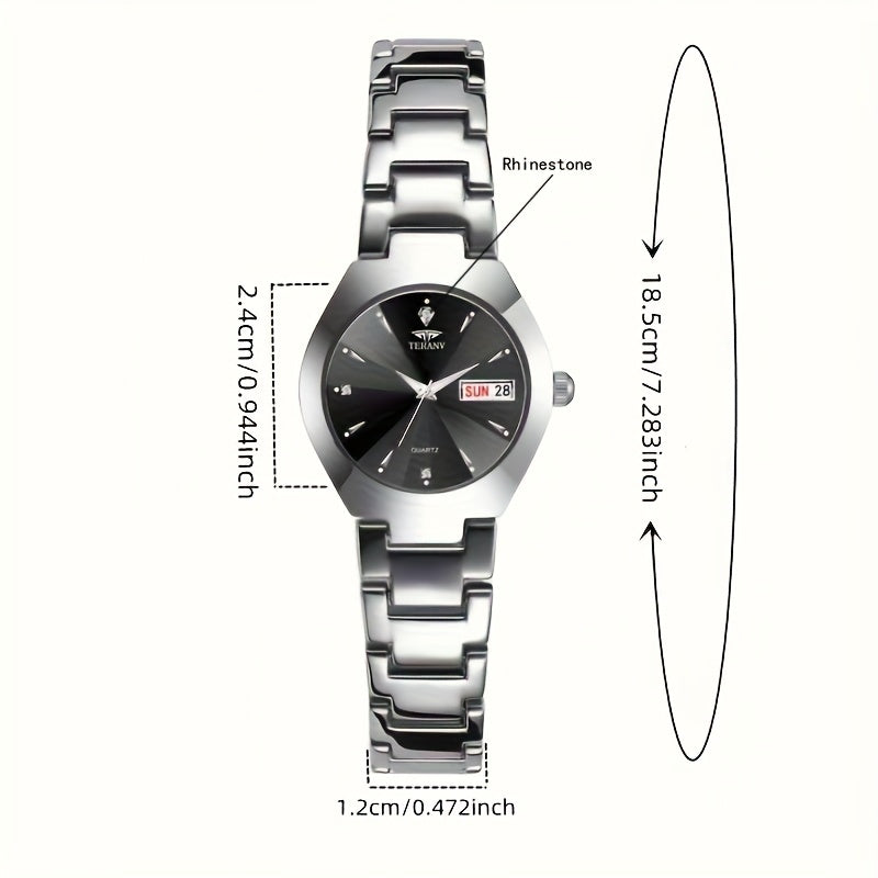 1 New Fashionable Quartz Ladies' Watch with Date Display - Black Dial, Luminous Hands & Markers, Stainless Steel Band, Casual Style, Travel & Business Use, Casual Style Watch | Minimalist Design | Quartz Movement