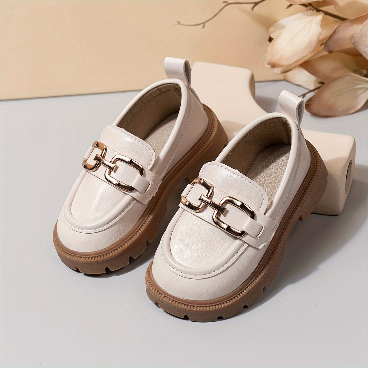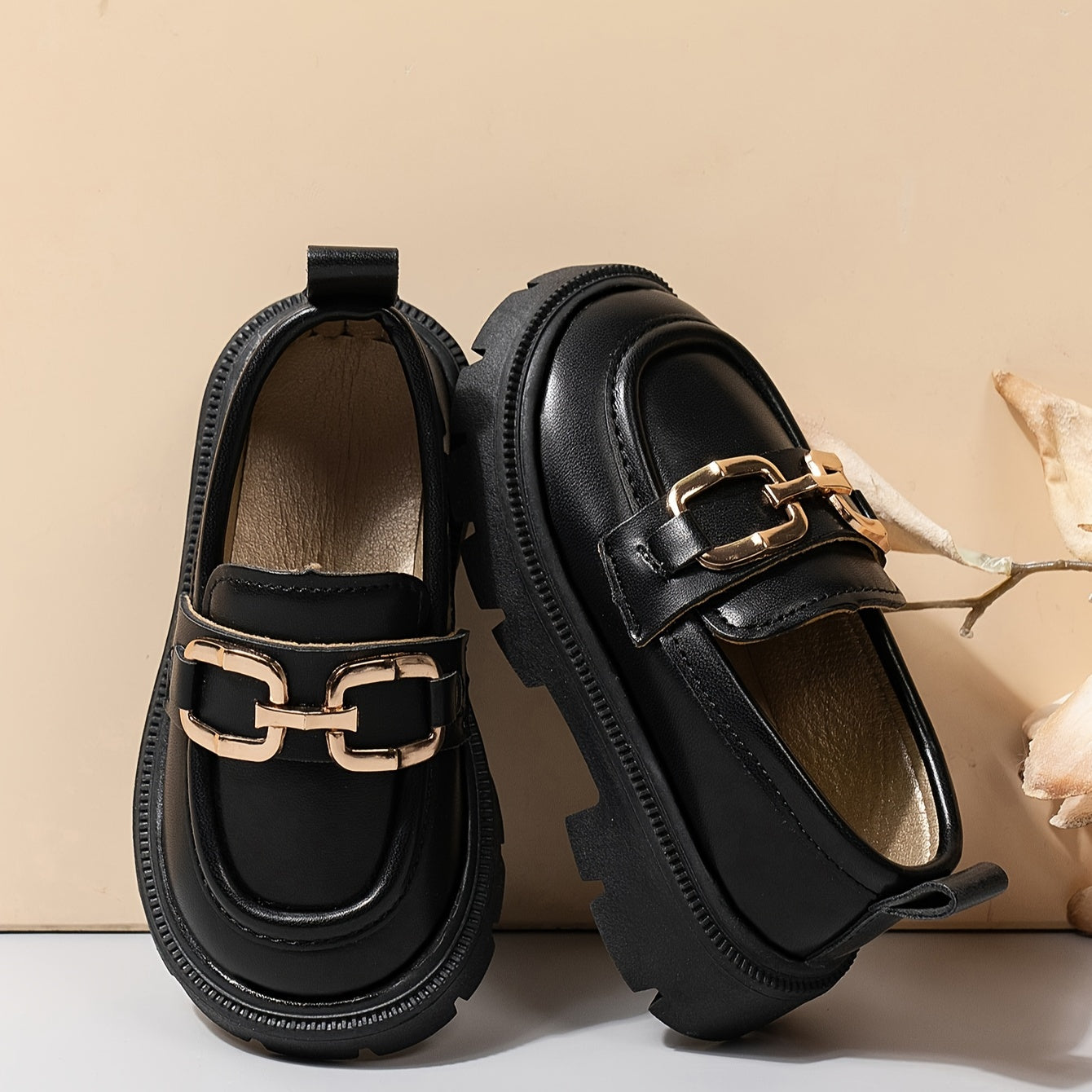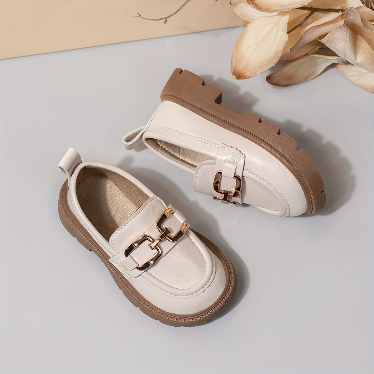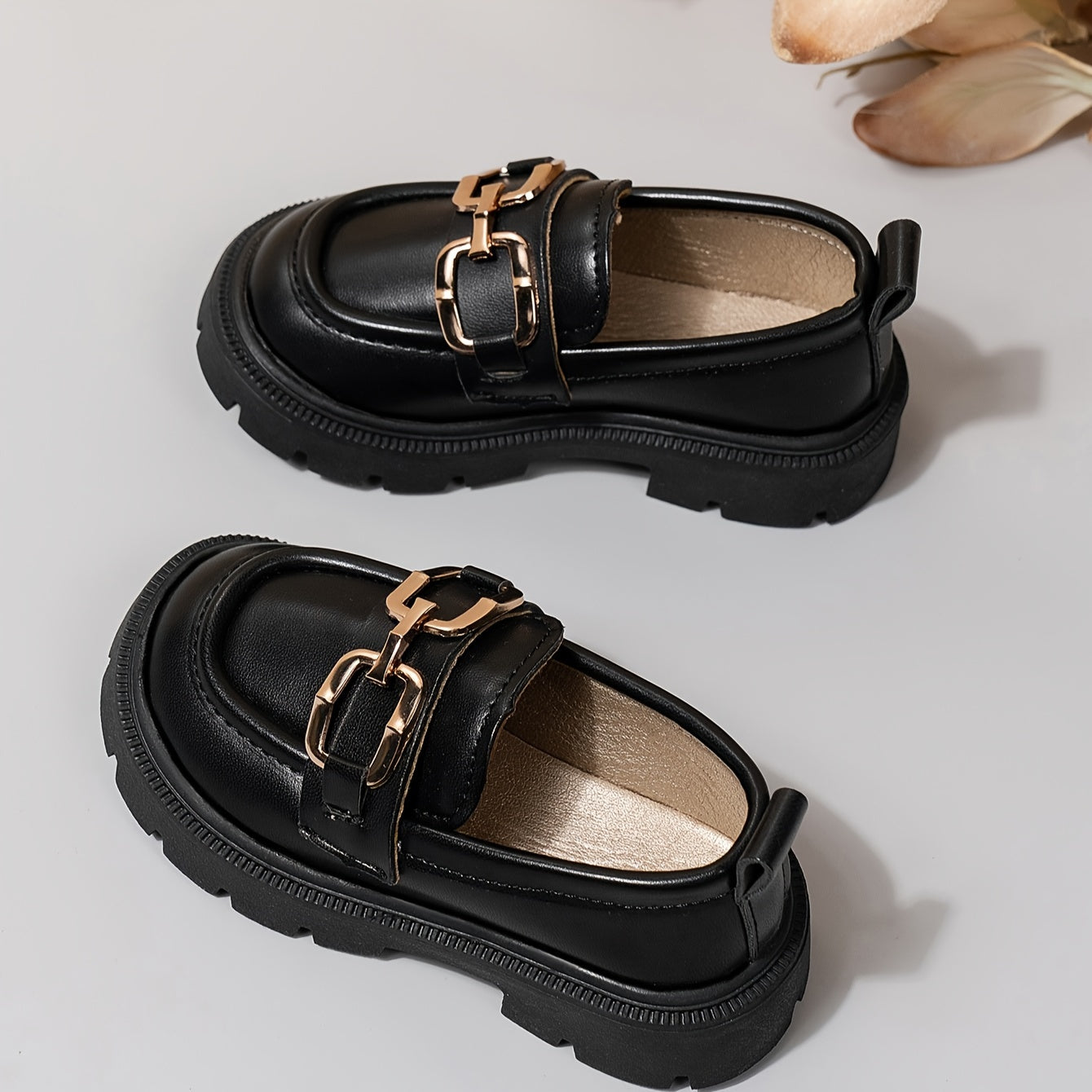 1 զույգ աղջիկների վինտաժ ոճի արհեստական կաշվից լոֆերներ. 14 տարեկանից ցածր երեխաների և մինչև 14 տարեկան երեխաների համար ռետինե տակացուով, կլոր ծայրով և հակասայթաքող կոշիկ.