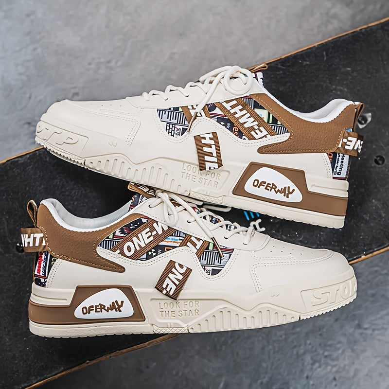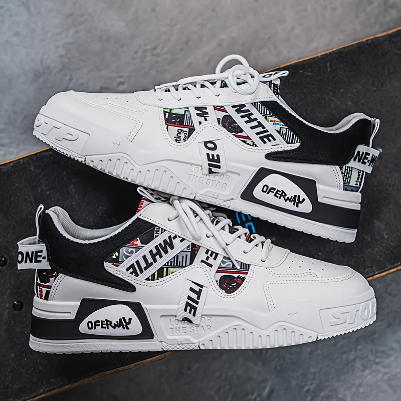 1 Pair MAINALUN Men'S Business Casual Sneakers - Lightweight, Durable, and Stylish for Outdoor Activities, Travel, and Daily Wear, White with Black Accents and Logo, Comfortable Lace-Up Design, Casual Footwear Stylish Casua