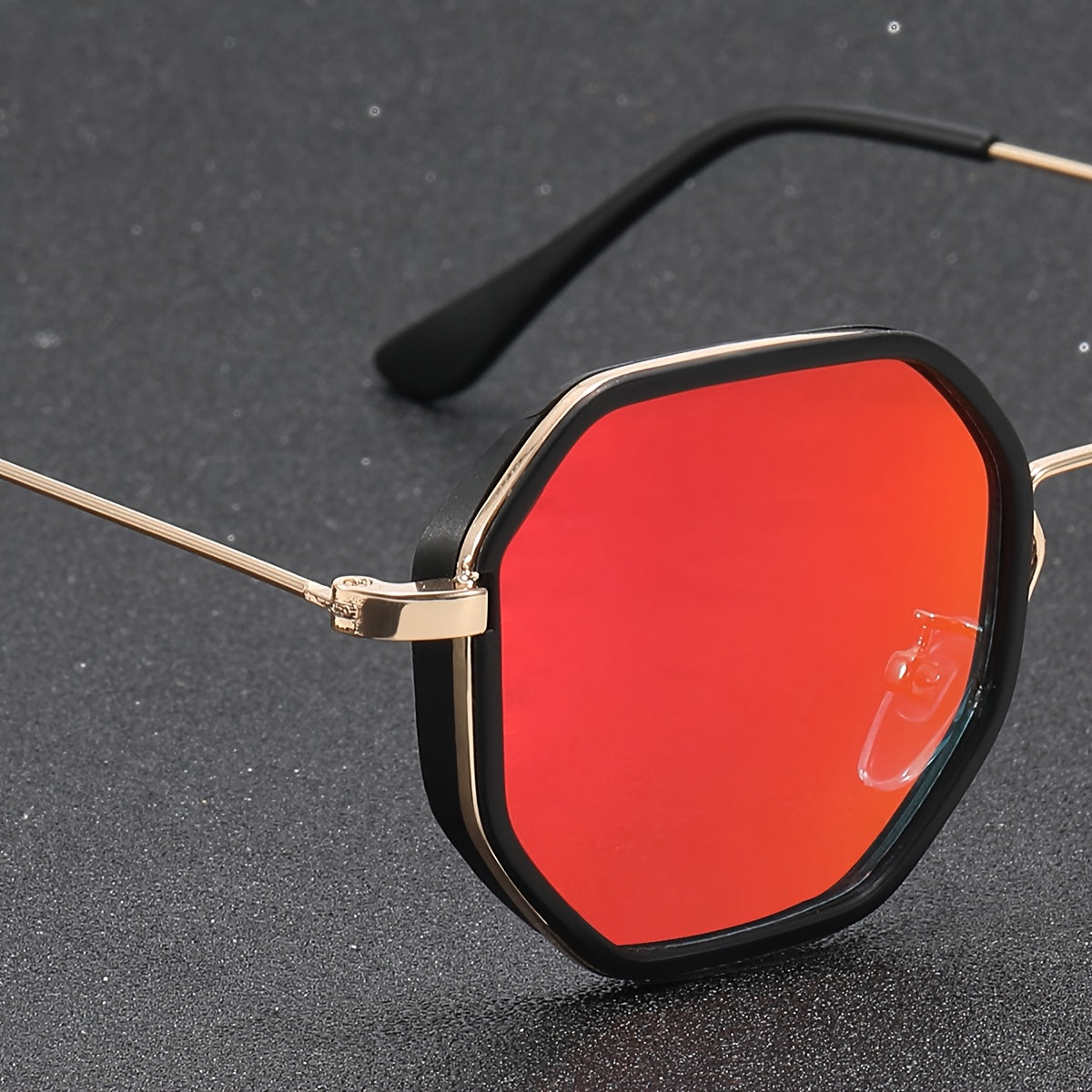 1 Pair of Men'S Geometric Copper Alloy Fashion Glasses with Red Lenses - Casual & Trendy, Ideal for, Daily Wear, and Holiday Gifts, Holiday Fashion Glasses|Sleek Metal Frame Glasses|Polycarbonate Lenses, Glasses