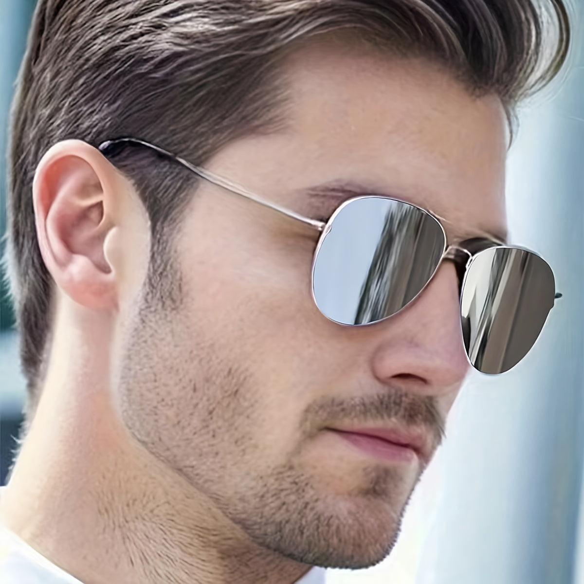 Տղամարդկանց արծաթափայլ արտացոլող մետաղական օվալաձև կրկնակի ճառագայթով ակնոցների 1 զույգ՝ ռետրո հասուն անհատականության և առօրյա նորաձևության համար