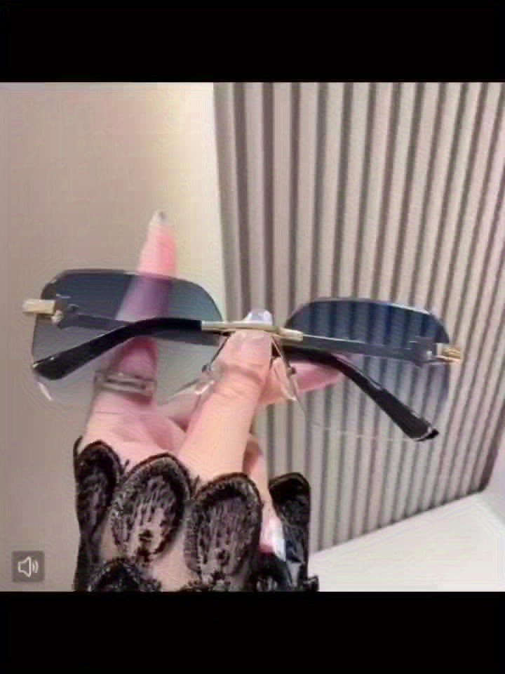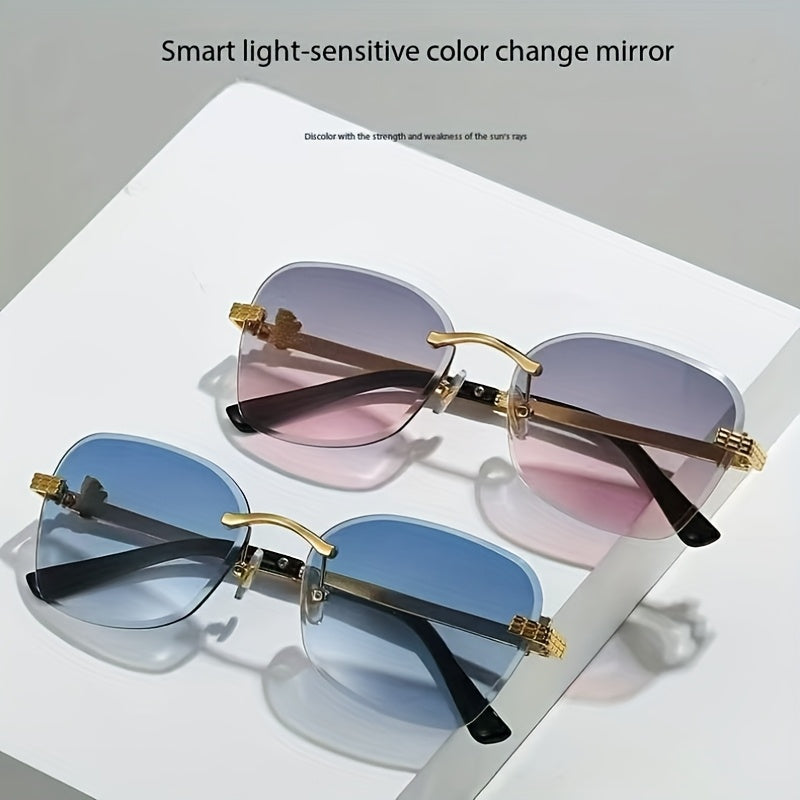 1 Pair Photochromic Square Fashion Glasses with PC Lenses & Golden-Tone Metal Frame - Transition Photochromic Lens Glasses, Rimless Design, Ideal for Trendy Men & Women, Perfect for Daily Wear & Gifting, Fashion Glasses|Squar