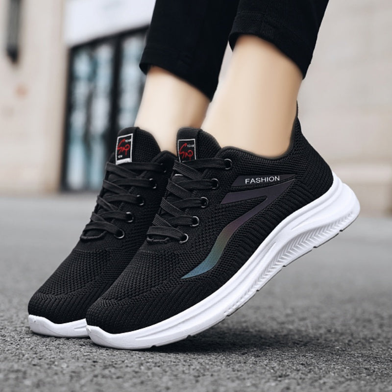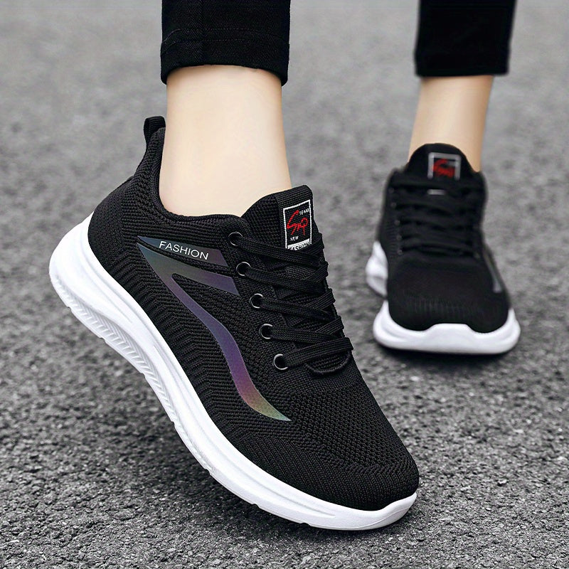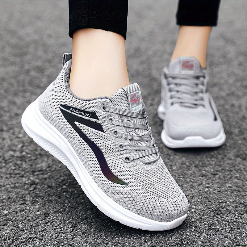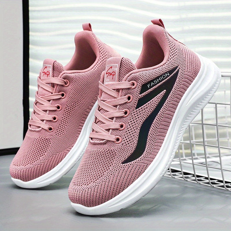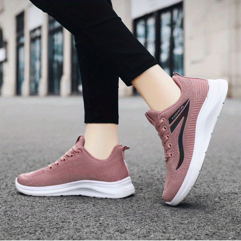 1 զույգ կանացի շնչող տրիկոտաժե սպորտային կոշիկներ՝ փափուկ ներբանային հարթակով քայլելու համար, ցածր վերևի սովորական ոճով, թեթև և հարմարավետ, հակասայթաքող և մաշվածության դիմացկուն, կատարյալ բացօթյա գործունեության համար