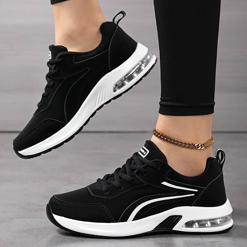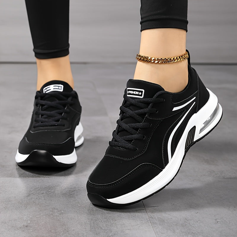 1 զույգ կանացի նորաձև մարզակոշիկներ - Բոլոր սեզոնային ցածր վերին կոշիկ՝ չսահող անջրանցիկ տակացուով, ծայրի կլոր ժանյակավոր ձևավորում, միկրոֆիբրե վերնամաս, կտորից ներս և ներբան, PU ներբան