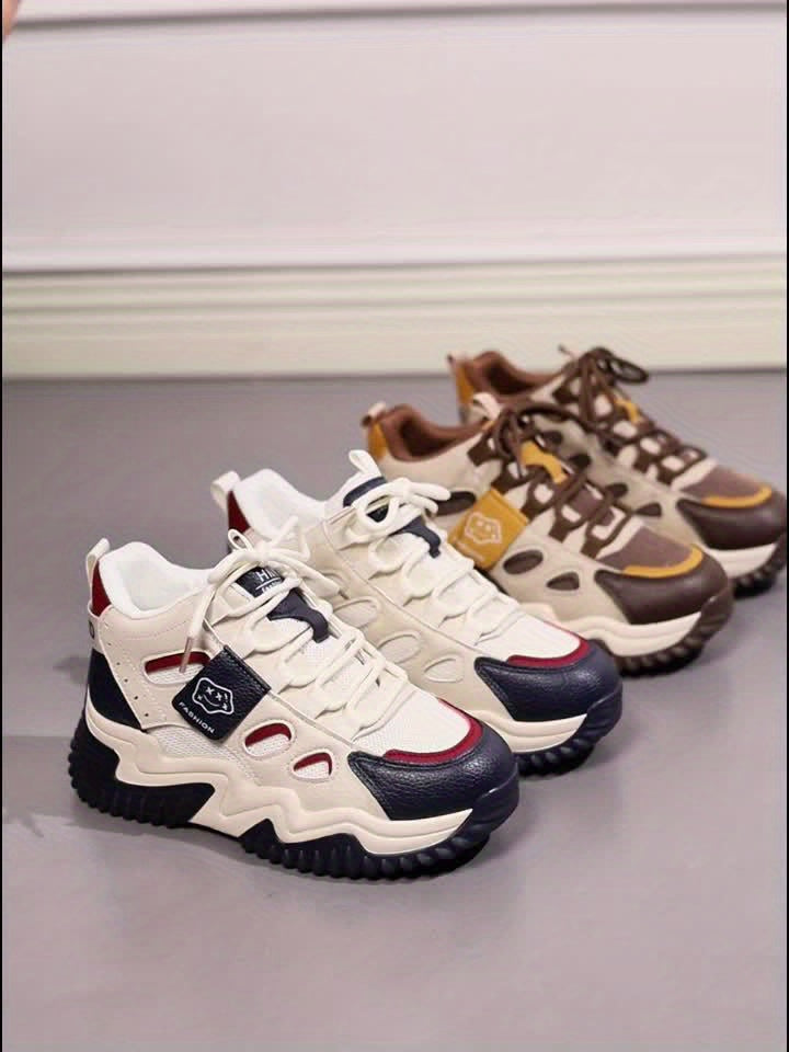 1 զույգ կանացի միջին չափի սպորտային կոշիկներ, նորաձև ցանցե դիզայնով, կապիչներով ամրացմամբ, կտորե վերնամաս և աստառ, արհեստական ներբան, տեքստիլային ներբան - գարնանային սեզոնի կոշիկներ