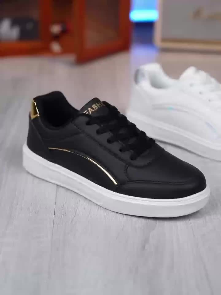 1 զույգ կանացի մինիմալիստական ժանյակավոր սպորտային կոշիկներ՝ միաձույլ գույնի, թեթև, բոլոր սեզոնային, ցածր վերևի կլոր կոշիկներով՝ EVA ներբանով և գործվածքից ներբանով՝ նորաձև պատահական սպորտային կոշիկներ