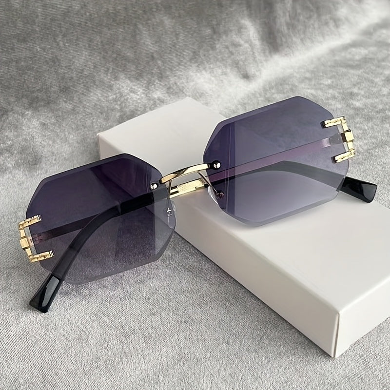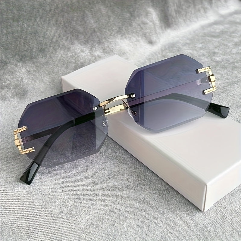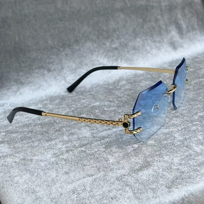 1 Pair Y2K-Inspired Rimless Fashion Glasses - Blue & Golden Frameless Eyewear with Polycarbonate Lenses, Lightweight Durable Design for Men & Women, Casual Streetwear, Parties, Holidays & Everyday Fashion Accessories, Party E