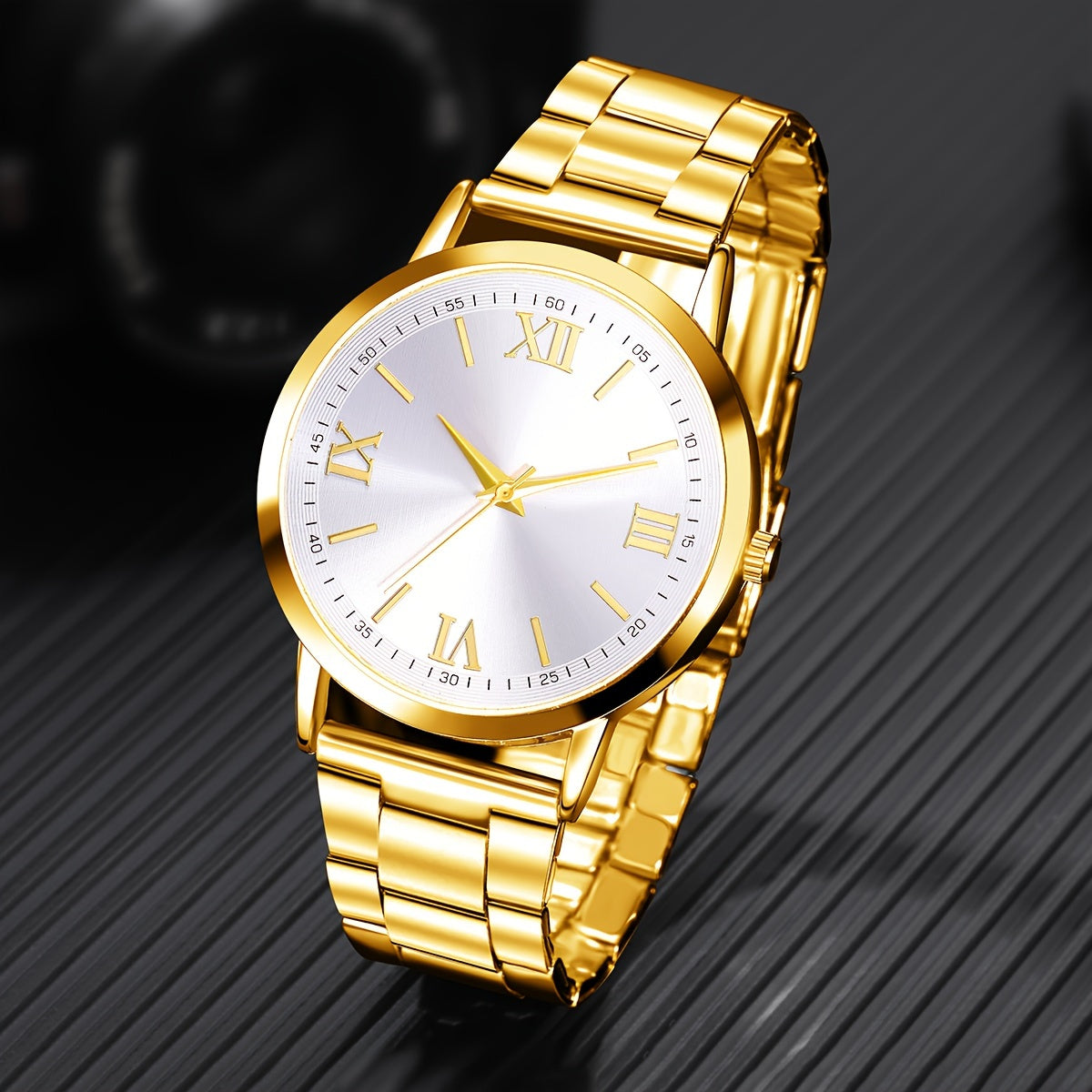 1 հավաքածու GINAVE տղամարդու ամենօրյա նորաձև քվարցային ժամացույց, կլոր համաձուլվածքից պատյան, չժանգոտվող պողպատե ժապավեն, մարտկոցով աշխատող, ջրակայուն չէ, էլեկտրոնային կառավարման վահանակ, Հայրերի օրվա նվեր