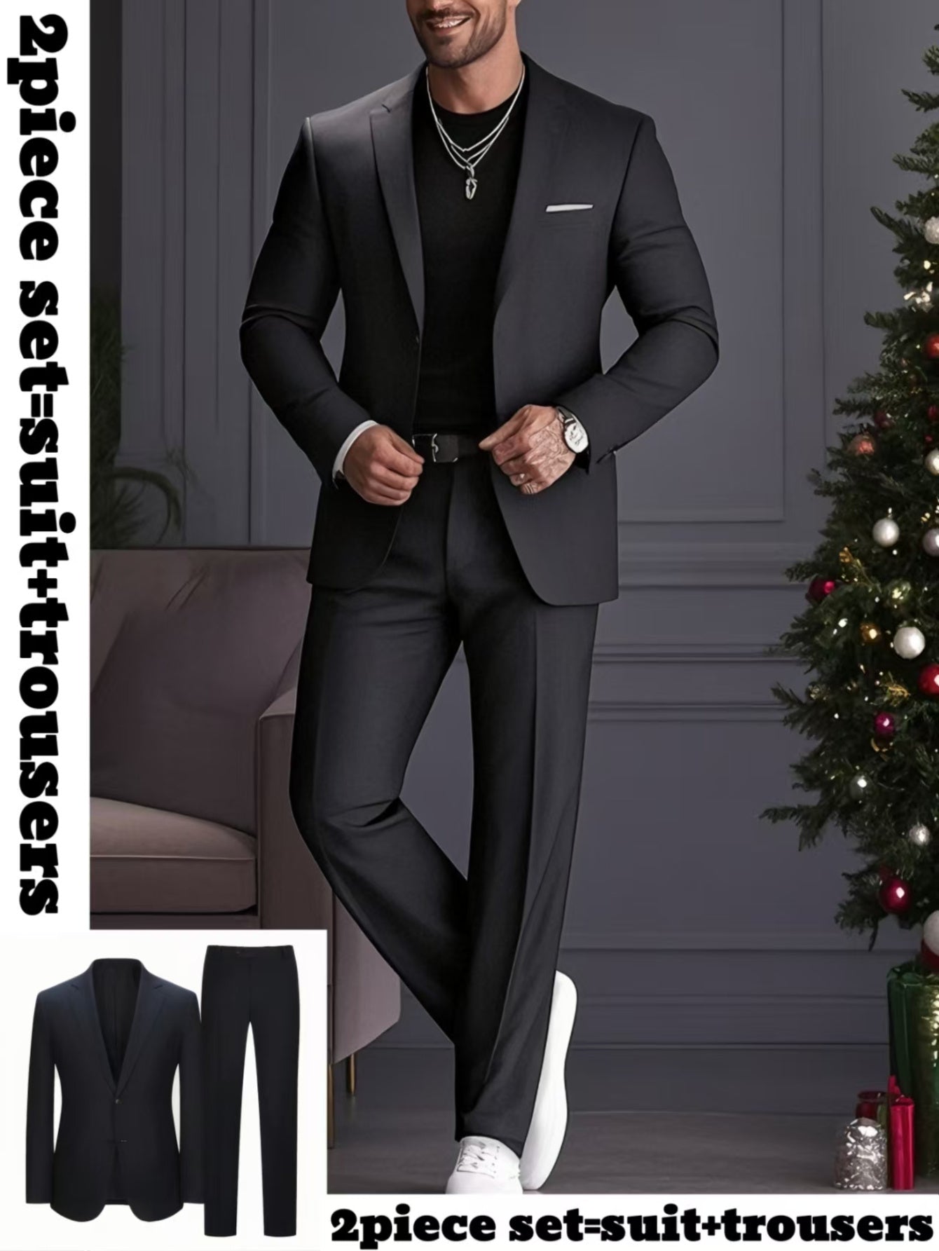 Տղամարդկանց դասական 2 հատ կոստյում և տաբատ 1 կոմպլեկտ - ամենօրյա ոճ, V-դիզ, երկարաթև, միաձույլ գույն, պոլիեսթեր և վիսկոզա խառնուրդ, ամենօրյա գրպաններով կոստյում, սովորական կոստյում, բոլոր եղանակներին