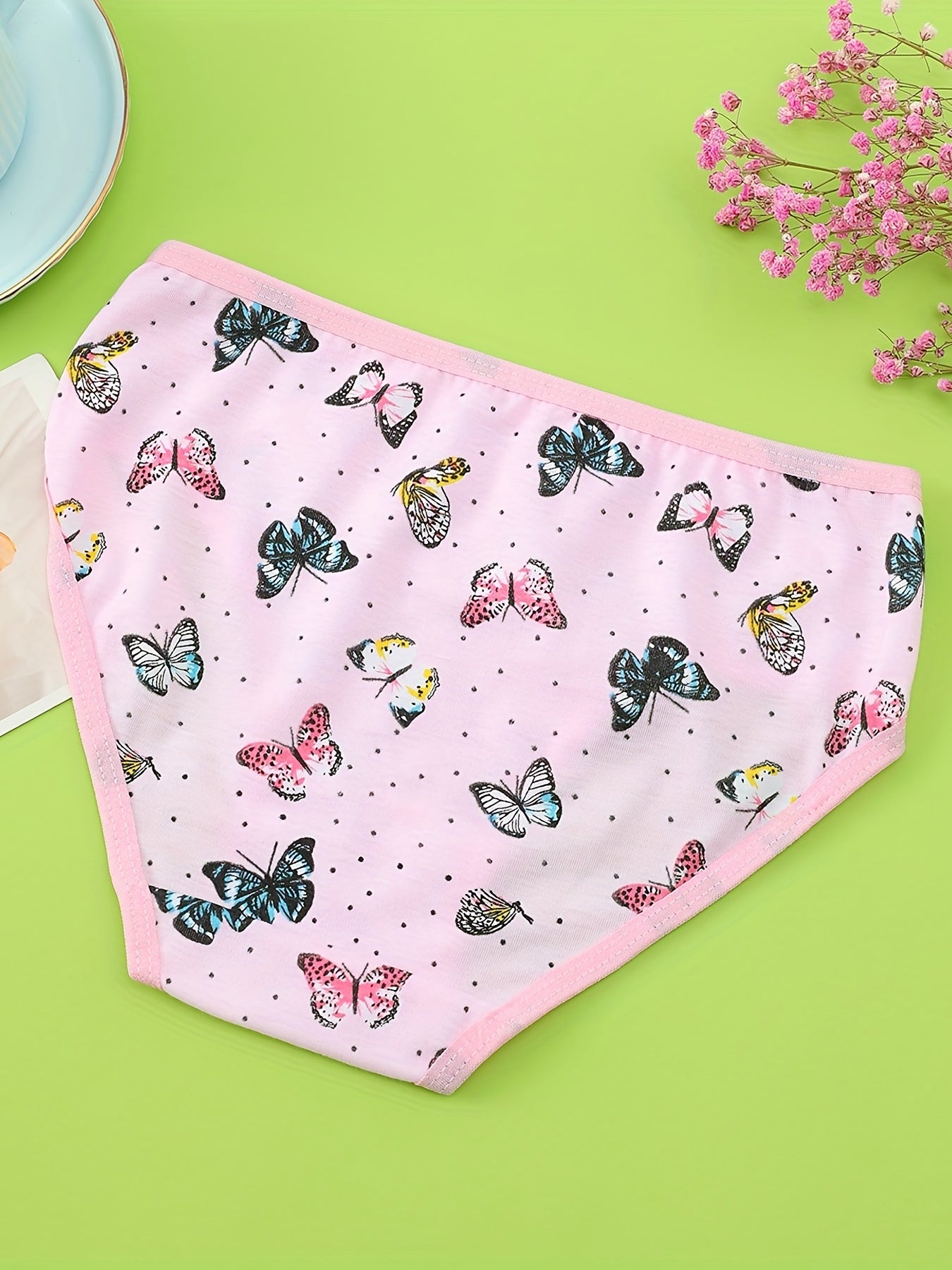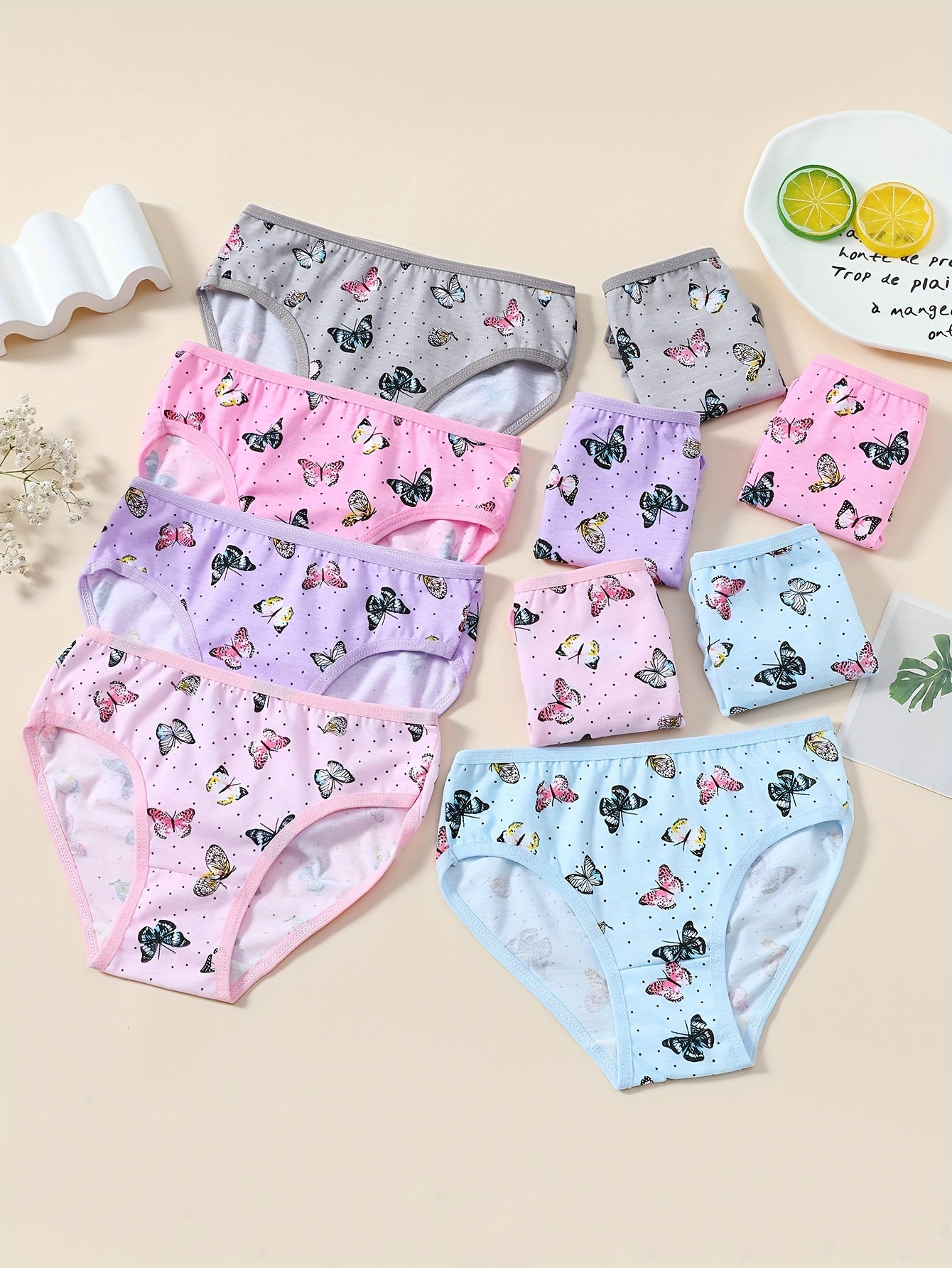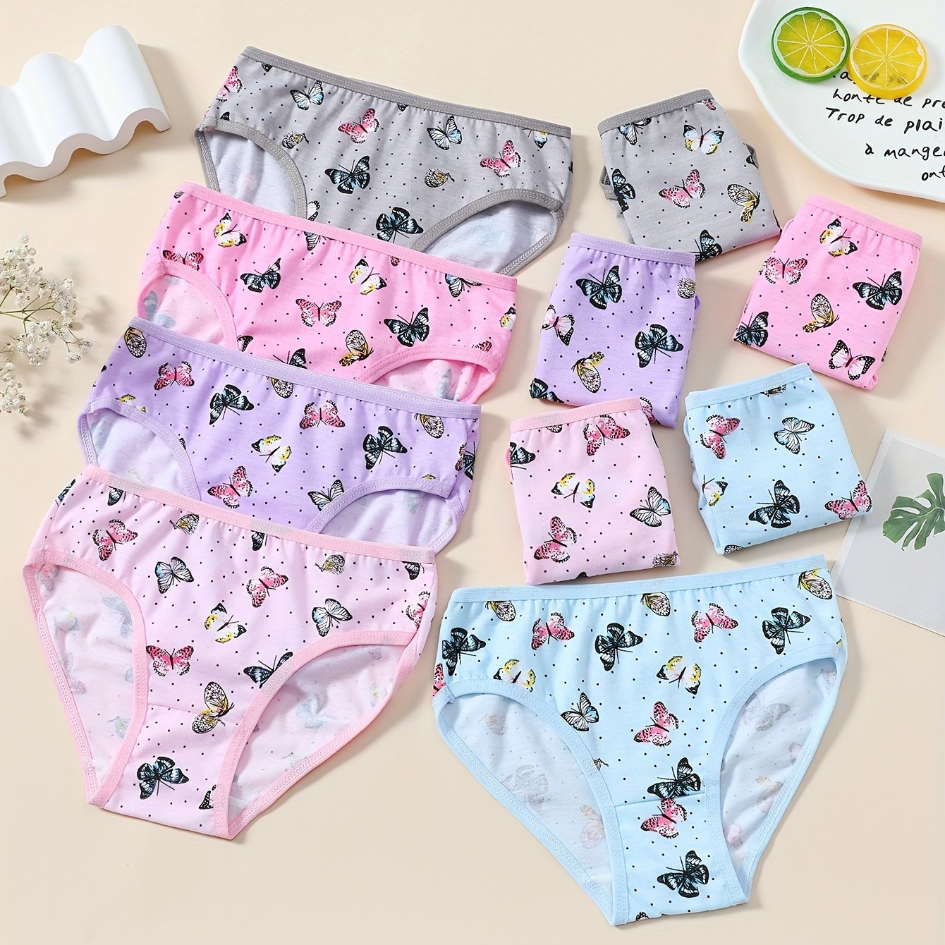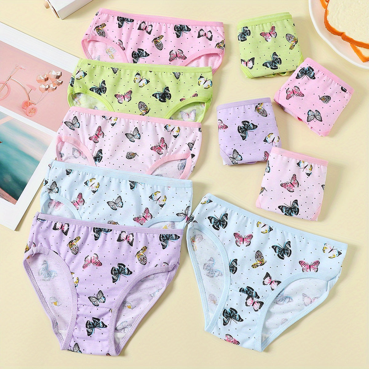 Մանկական բամբակյա խառնուրդի շալվարներ, փափուկ տրիկոտաժե գործվածք, միջին ձգվող գործվածք, հարմարավետ էլաստիկ ներքնազգեստ աղջիկների համար 10 փաթեթով, թիթեռի ձևանմուշով: