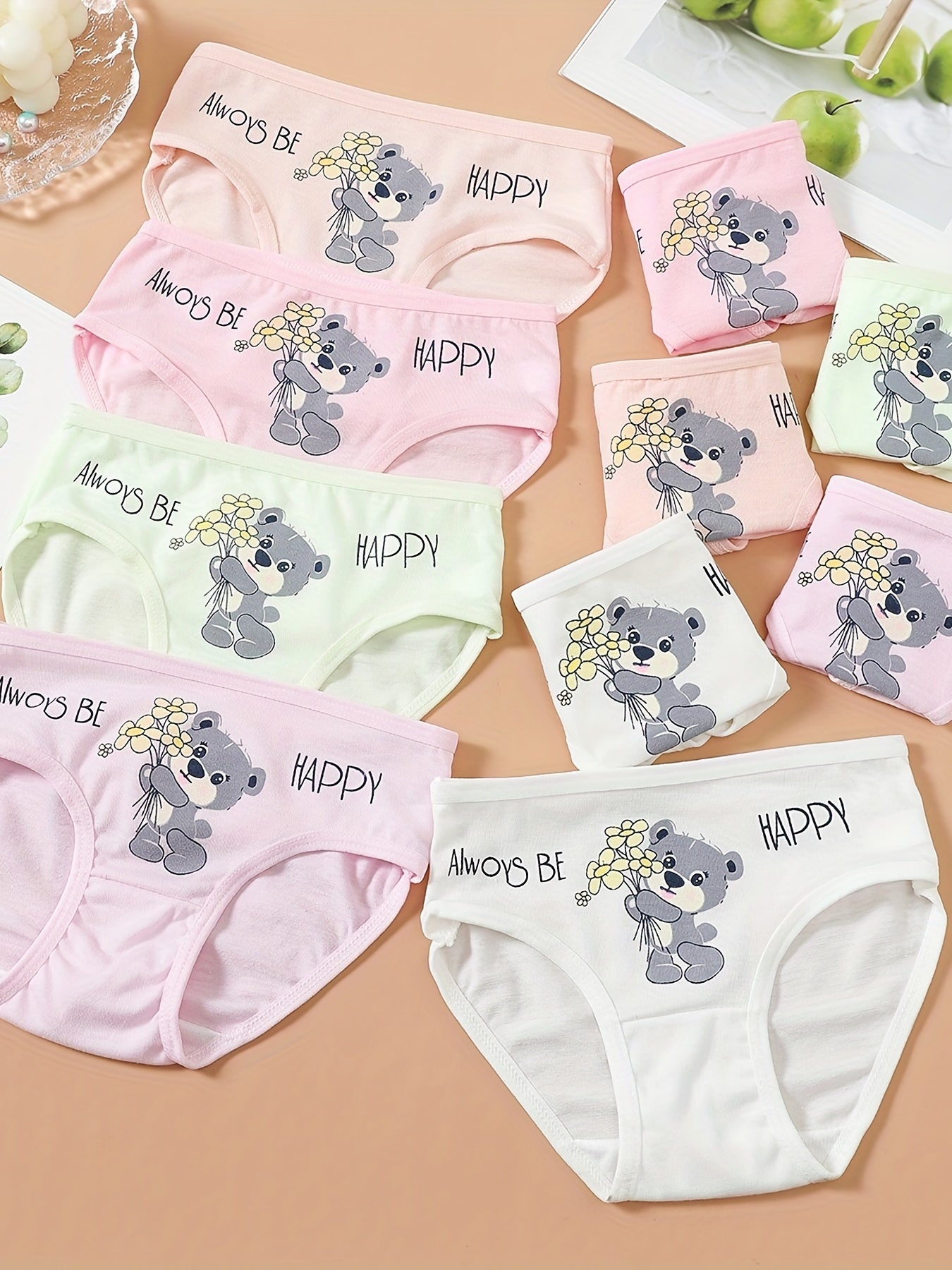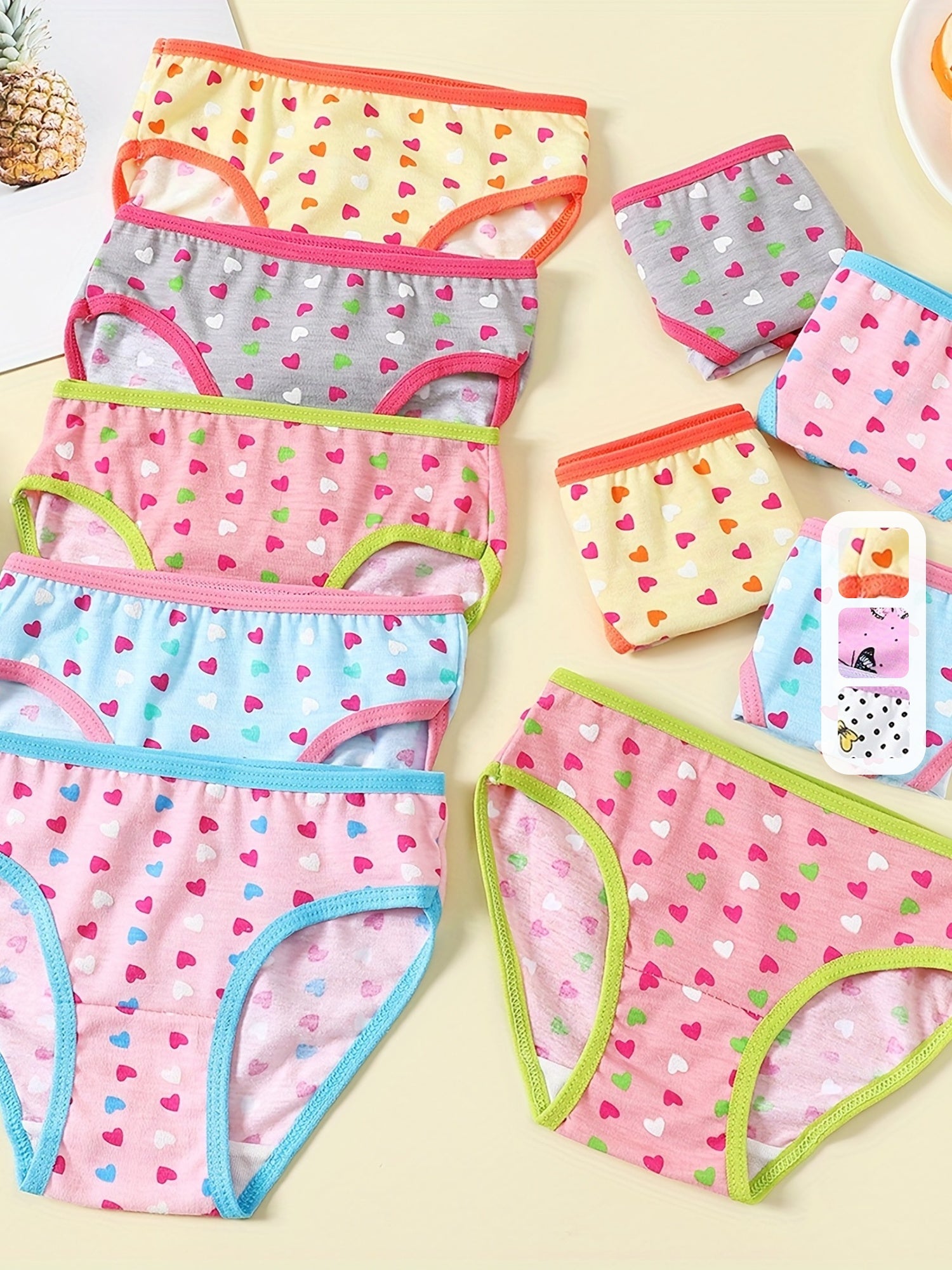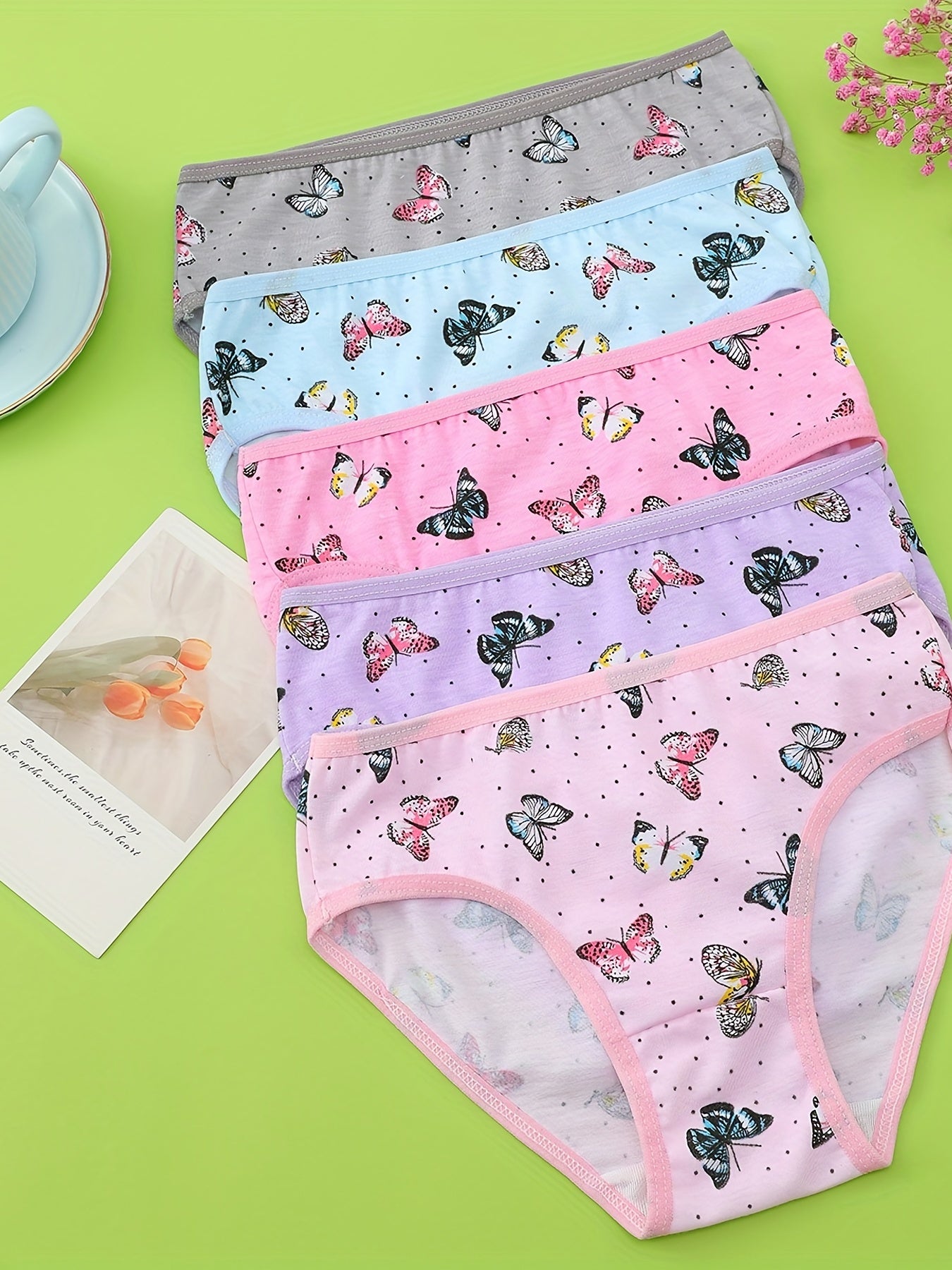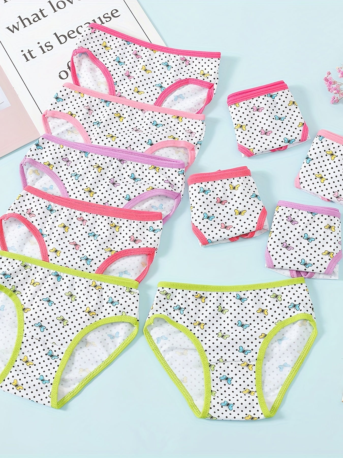 Մանկական բամբակյա խառնուրդի շալվարներ, փափուկ տրիկոտաժե գործվածք, միջին ձգվող գործվածք, հարմարավետ էլաստիկ ներքնազգեստ աղջիկների համար 10 փաթեթով, թիթեռի ձևանմուշով: