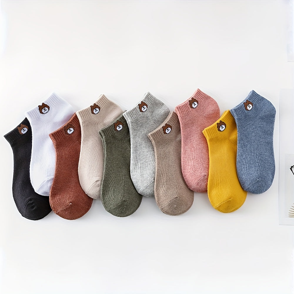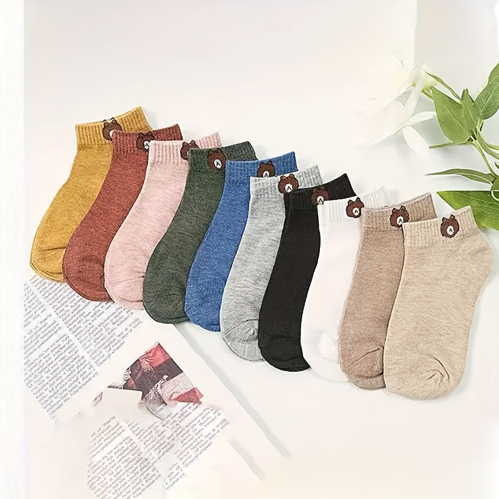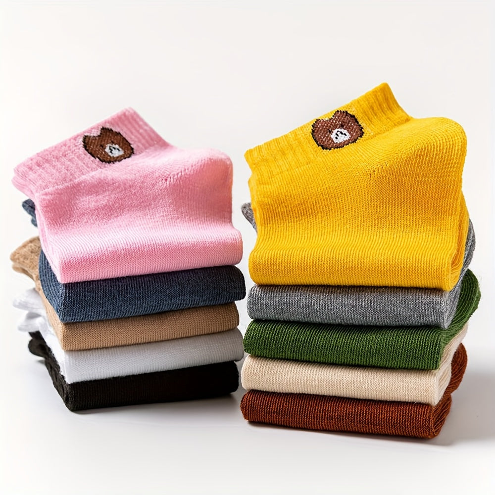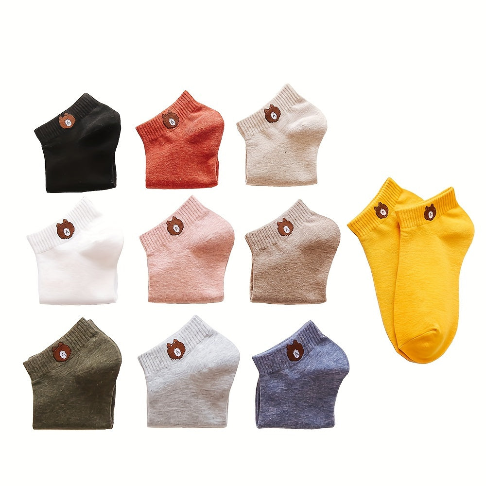 10 զույգ Cartoon Bear Print գուլպաներ, Հարմարավետ և գեղեցիկ Crew կարճ գուլպաներ, կանացի գուլպաներ և գուլպաներ