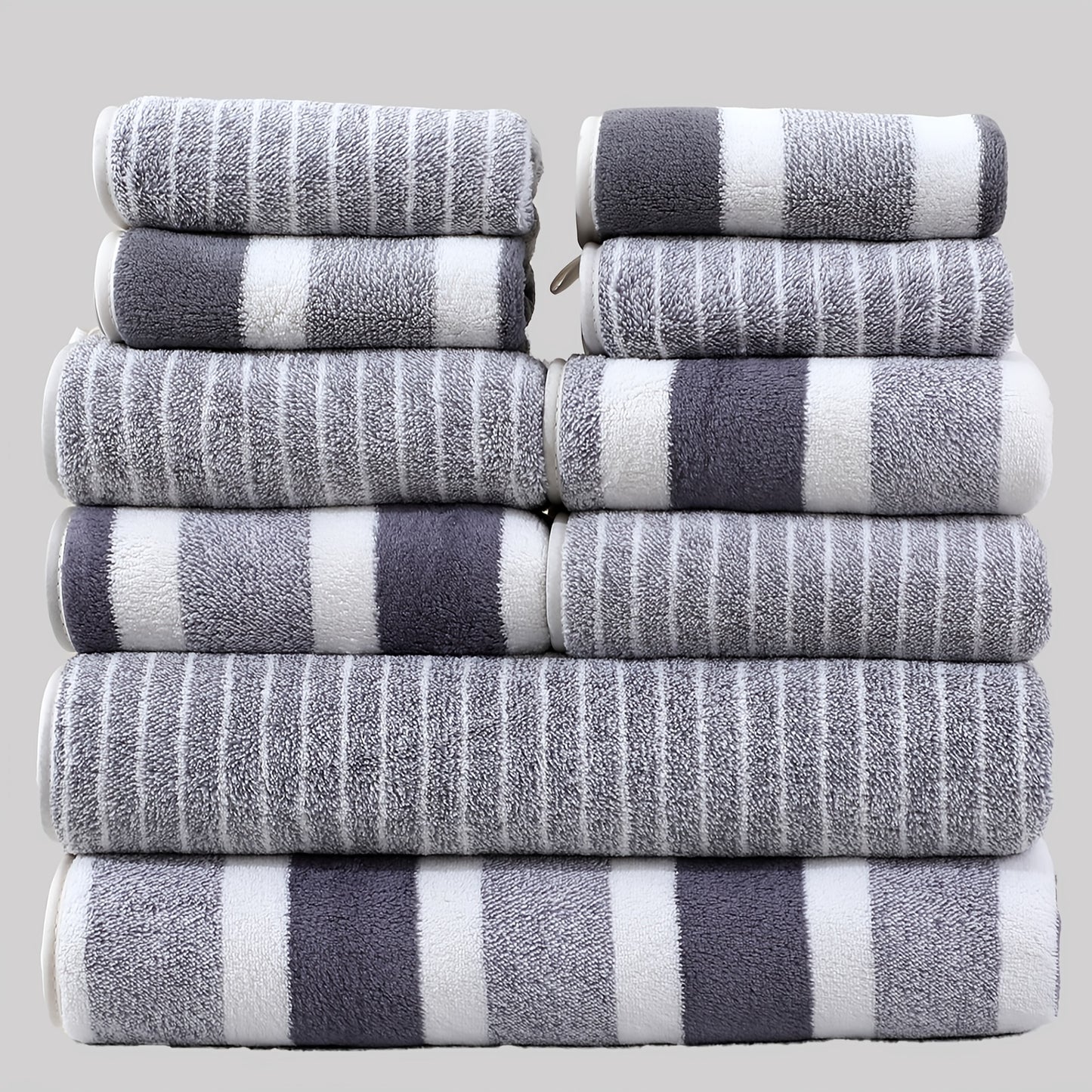 10 հատ Ժամանակակից սրբիչների հավաքածու, պոլիեսթեր և նեյլոնե խառնուրդ, տրիկոտաժե գործվածք, սուպեր ներծծող, մեքենայով լվացվող, 2 լոգանքի սրբիչով, 4 ձեռքի սրբիչով, 4 անձեռոցիկ լոգարանի համար, ցնցուղ, հյուրանոց, մարզասրահ, սպա