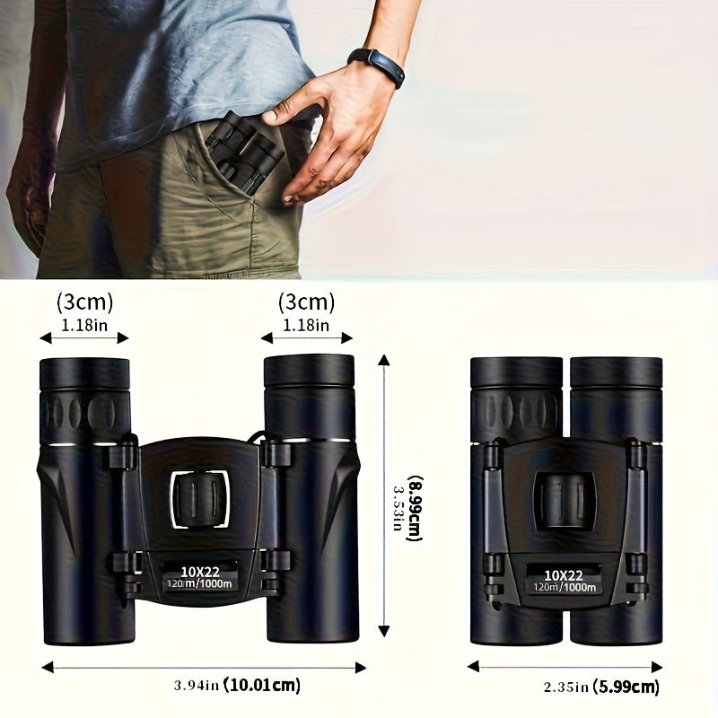 10x22 կոմպակտ ծալովի հեռադիտակ HD, թեթև, գրպանի չափսի, պրիզմայով և կենտրոնական ֆոկուսով - դիմացկուն պլաստիկ՝ հետազոտությունների, համերգների, սպորտային միջոցառումների, կոմպակտ հեռադիտակների համար