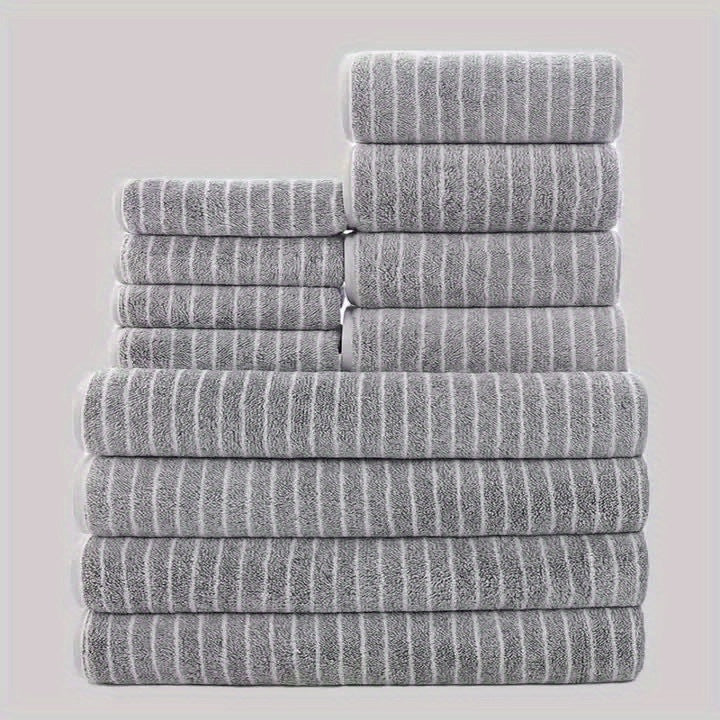 12 հատ նեղ շերտերի հավաքածու, 4 հաստ ձեռքի սրբիչներ, 4 լոգարանի սրբիչներ, 4 դեմքի սրբիչներ, 12 հատ սրբիչների հավաքածու, գերփափուկ և հաստ լոգարանի սրբիչ, ներծծող և արագ չորացող ցնցուղի սրբիչ, իդեալական լոգարանի պարագաներ՝ հարմար տնային լոգարանների համար։
