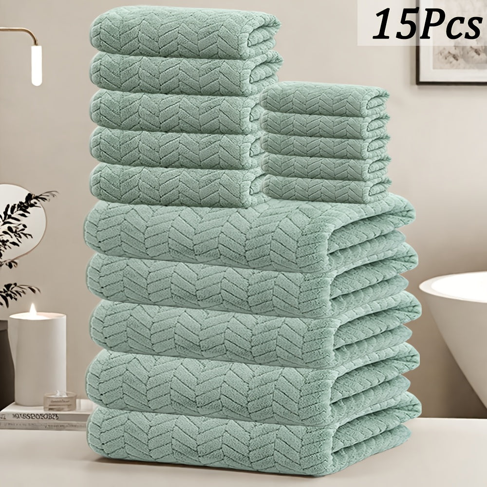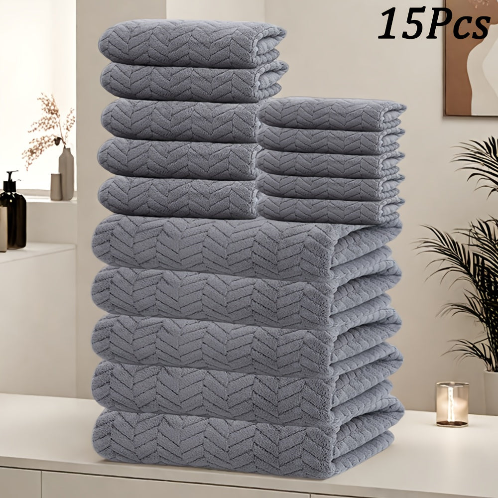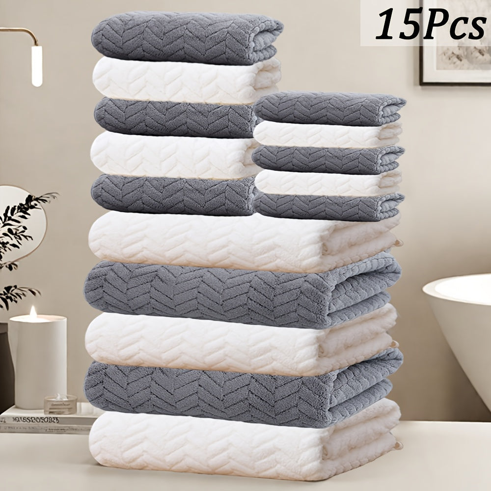 15 հատ Լոգարանի սրբիչների հավաքածու, ցորենի ականջի ձևանմուշ, միկրոֆիբրային նյութ, փափուկ և հարմարավետ, լավ ջրի ներծծում, ընտանեկան հավաքածու, հարմար է լոգարանի ցնցուղի համար, հյուրանոց, սաունա, բազմագույն ընտրովի, լվացքի կտորներ