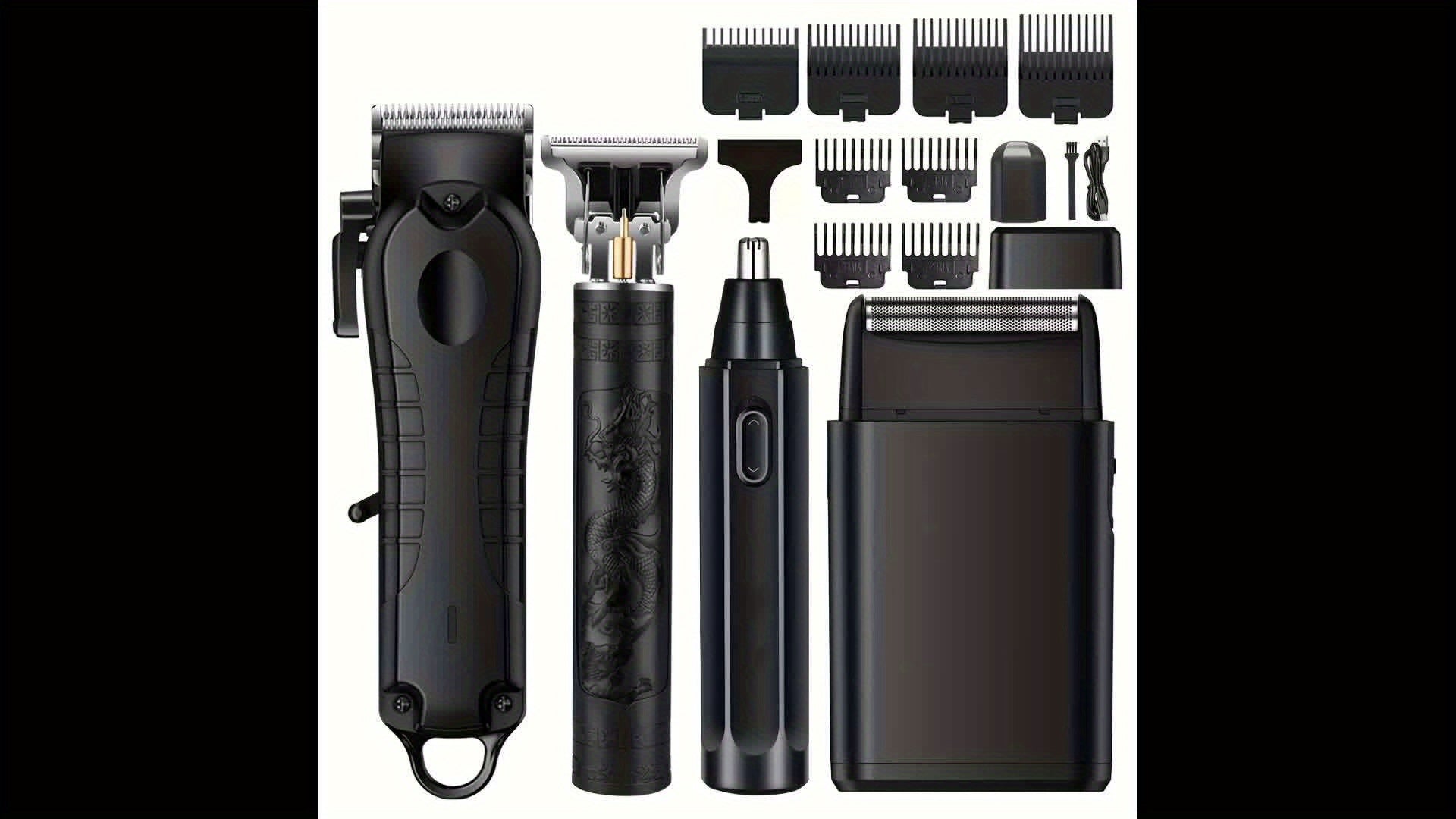 1pc/4pcs Men'S Grooming Kit, Hair Clipper, Electric Shaver, Nose Trimmer, Beard Trimmer, USB Rechargeable Multi-Functional Haircutting Set, Perfect for Beard and Hair Trimming, Travel Essentials, Father'S Day Gift