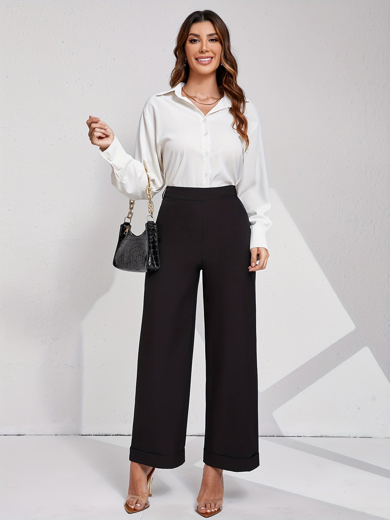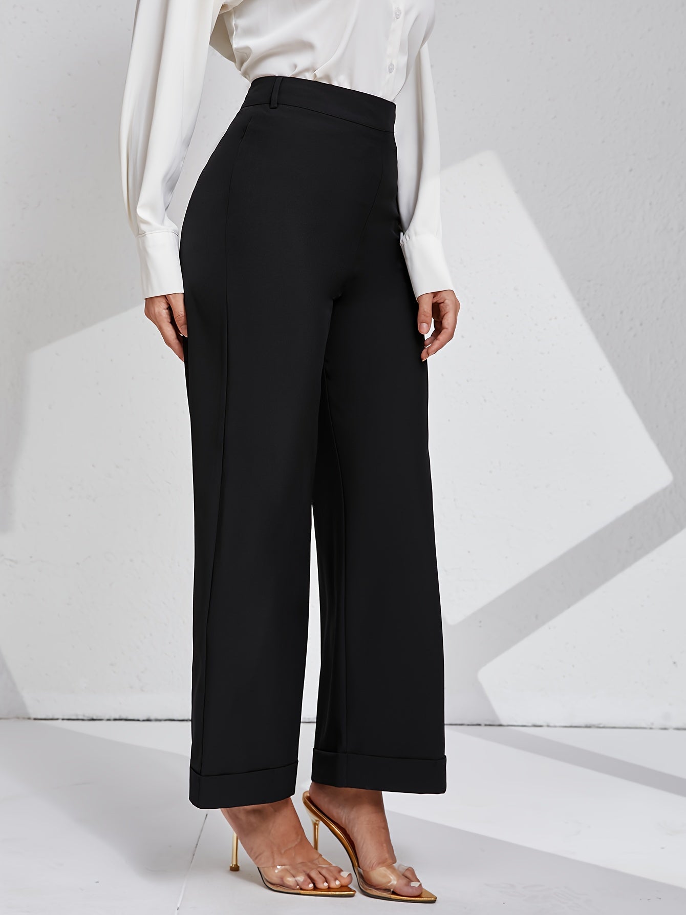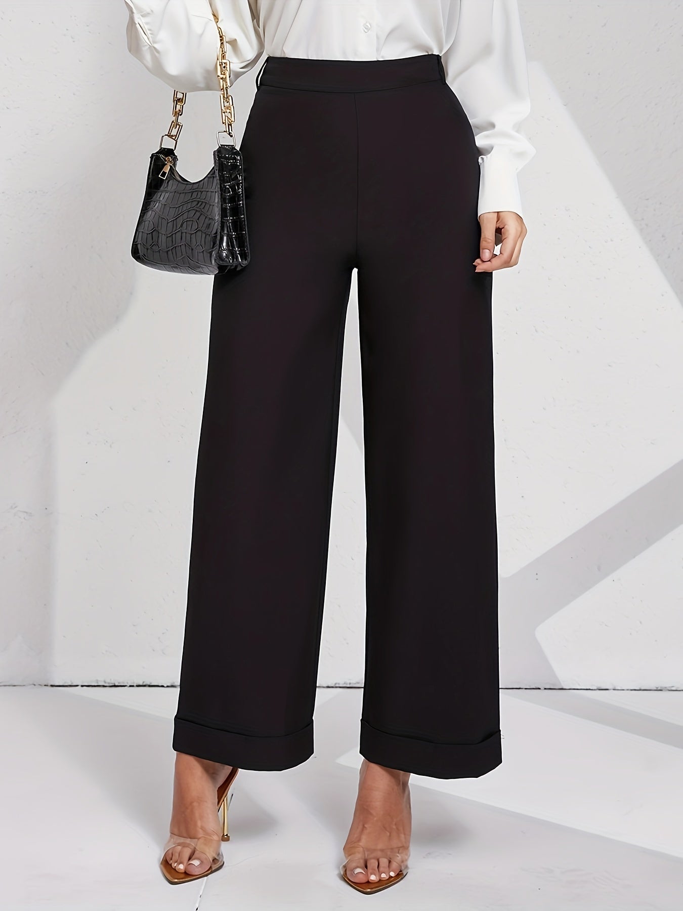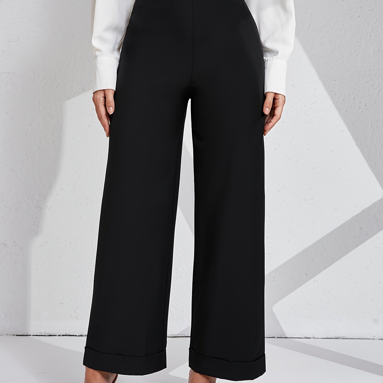 1 հատ էլեգանտ լայն շալվար կանանց համար. պատահական պոլիեսթեր տաբատ՝ կայծակաճարմանդով, միաձույլ գույնի, երկար երկարությամբ, սովորական տեղավորմամբ, հյուսված գործվածքով - բազմակողմանի բոլոր սեզոնային ոճով
