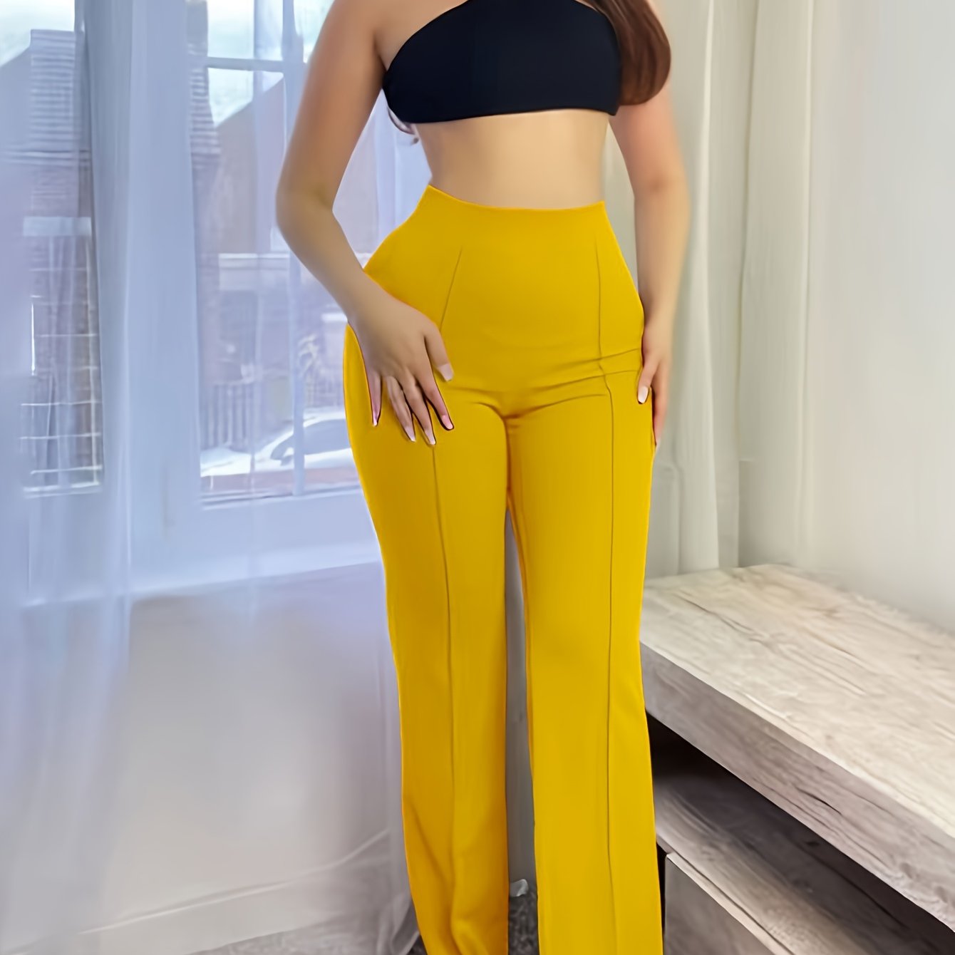 1 հատ էլեգանտ լայն շալվար կանանց համար - պոլիեսթեր թեթև ձգվող միագույն տաբատ, բազմակողմանի նորաձև գրասենյակային և ամենօրյա հագուստի համար, հարմար է գարուն/ամառ/աշուն - մեծահասակների համար