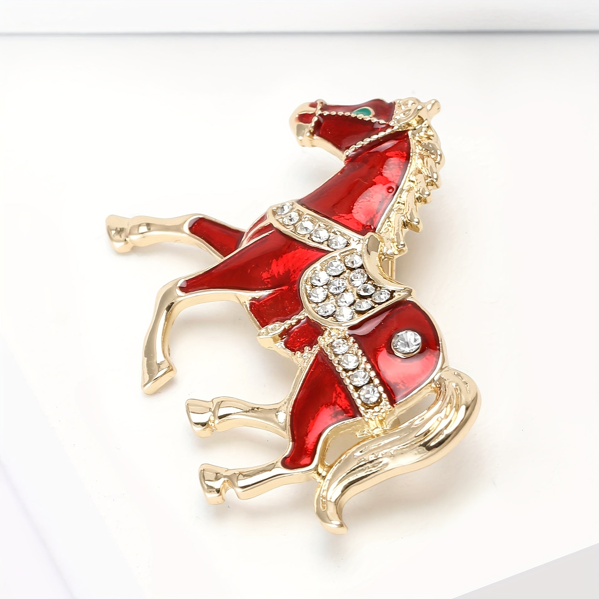 1pc Enamel Dripping Oil Inlaid Rhinestone Pony Fashion Brooch | Creative Ethnic Style Horse Badge Pin, High-End Design Couple Accessories, Exquisite Suit Corsage Party Decoration, Suitable for Christmas, Year of the Horse, Eq