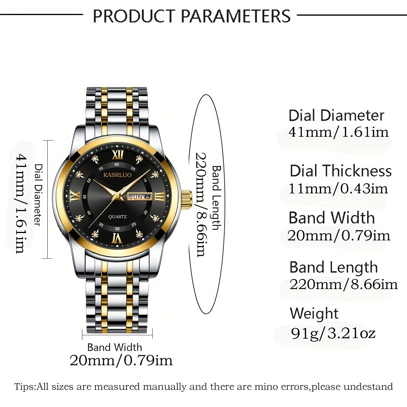 1pc KASRLUO Men'S Business Sports Watch - Stainless Steel Band, Double Date Display, Quartz Movement, Round Alloy Case, Electronic Drive, Calendar Feature, Ideal Gift for Men, KASRLUO
