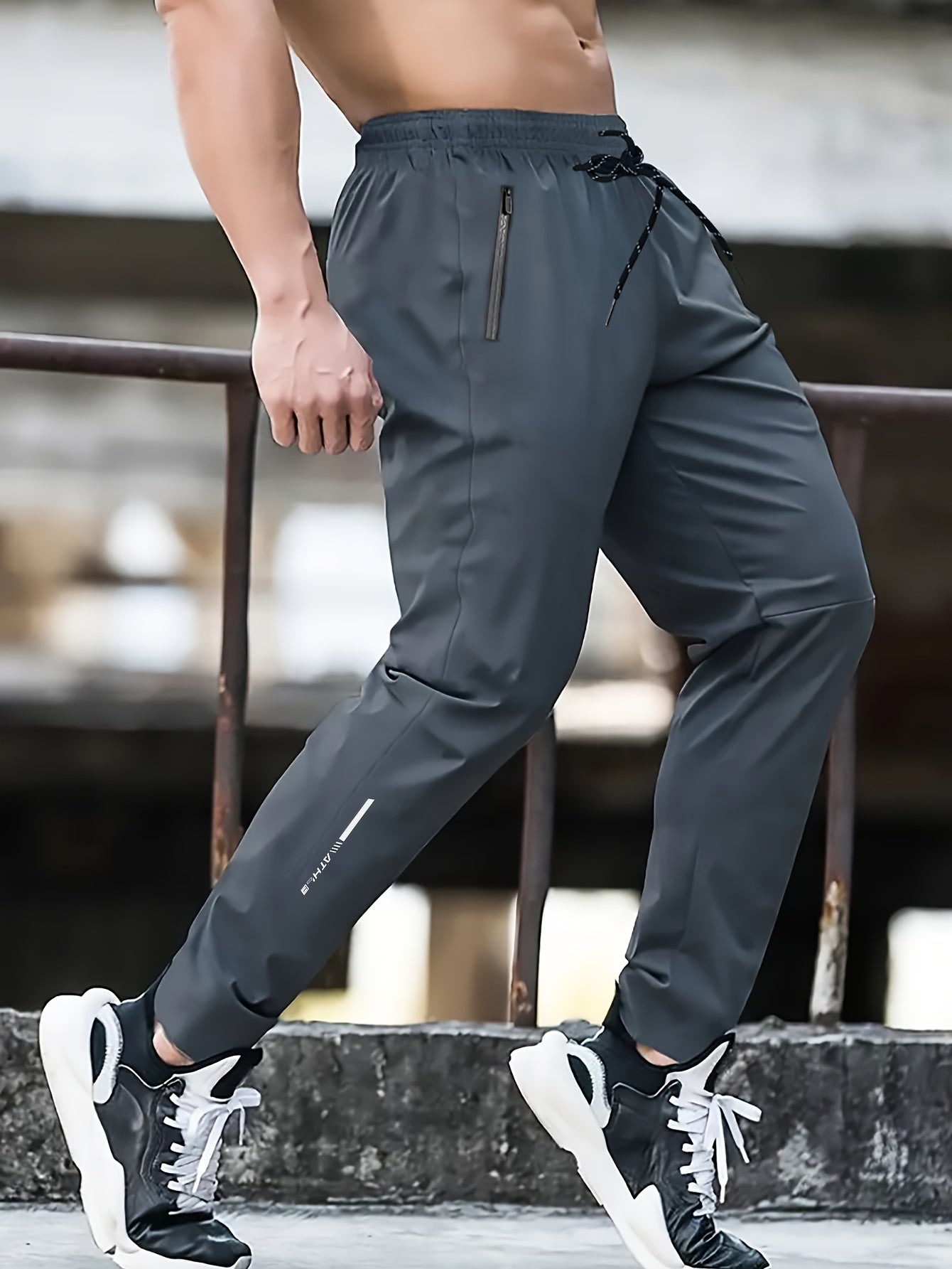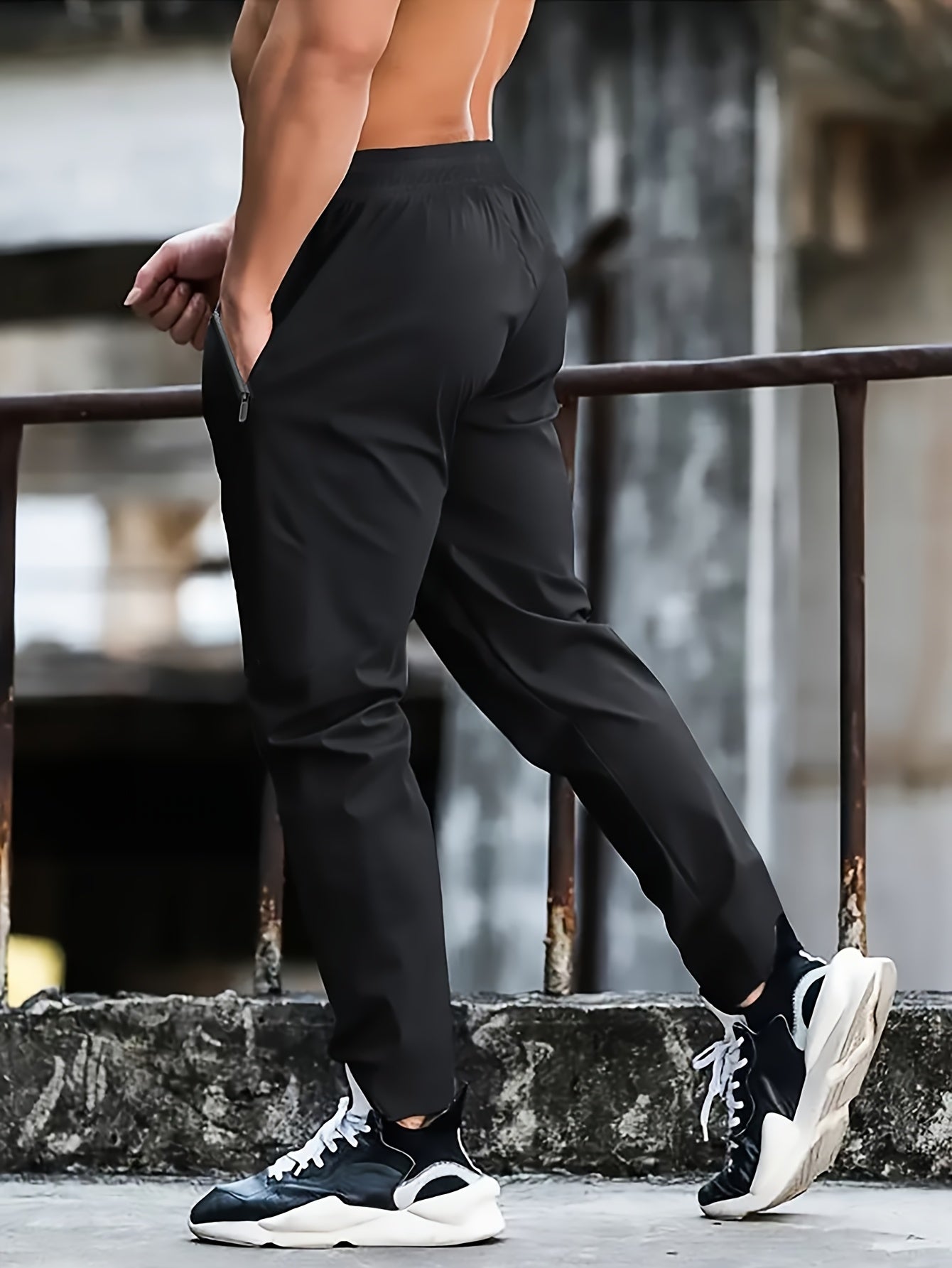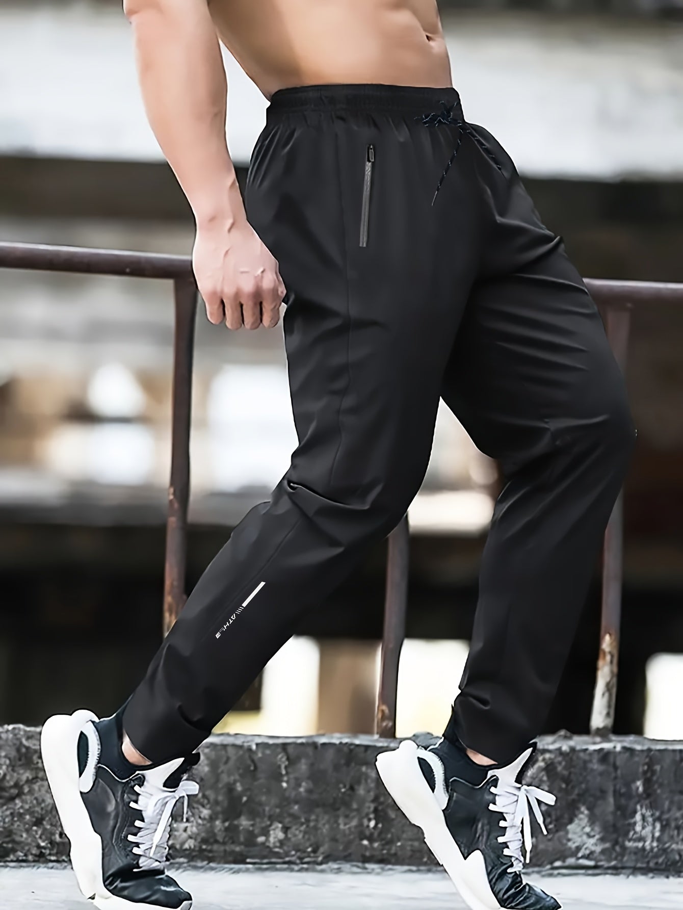 Տղամարդկանց սպորտային տաբատ 1 հատ, արագ-չորացող հյուսված պոլիեսթեր, պատահական մարզասրահ մարզման տաբատ՝ կայծակաճարմանդով, թեթև ձգվող կանոնավոր հարում, գարուն/աշուն սեզոն՝ սև