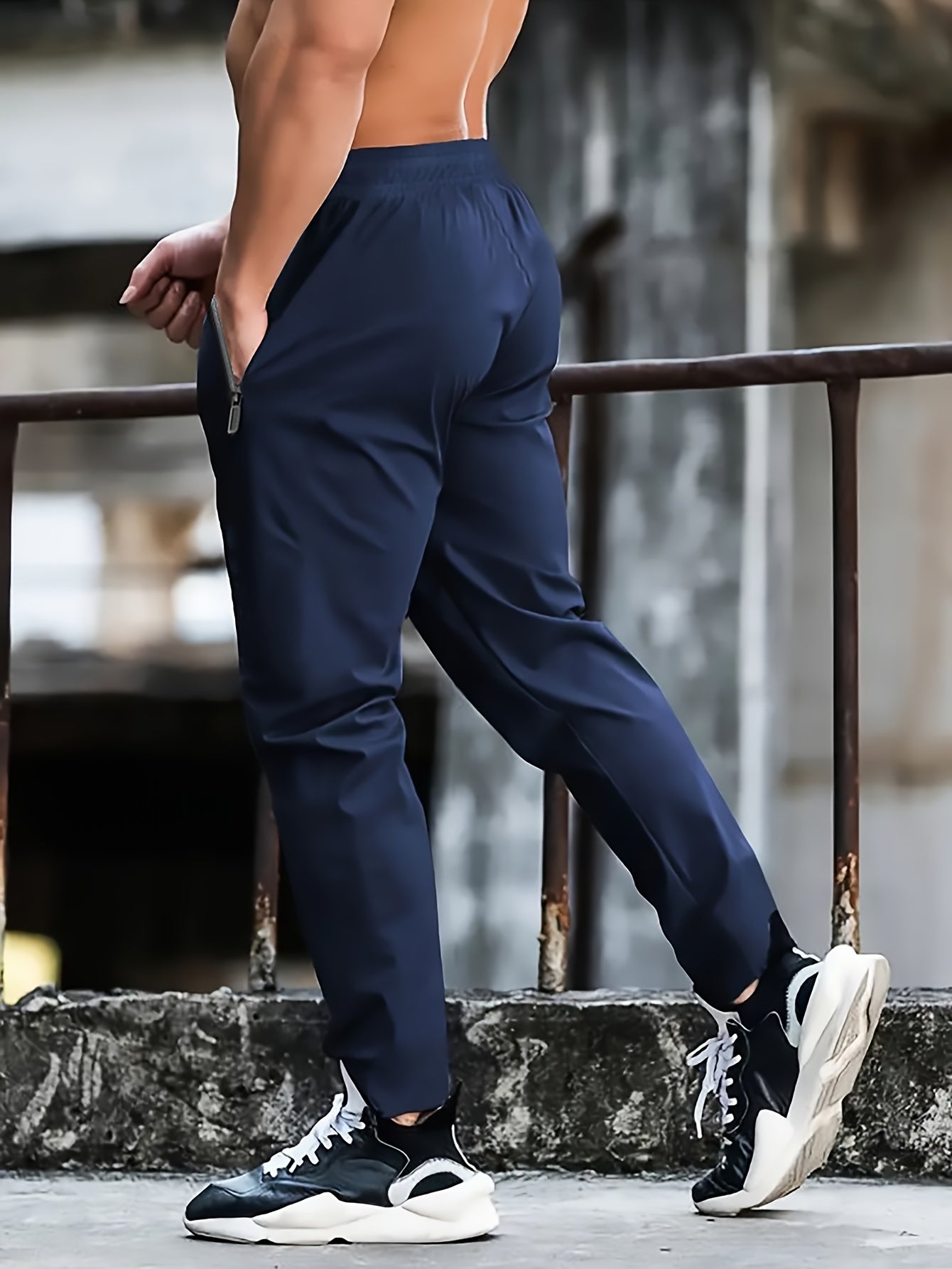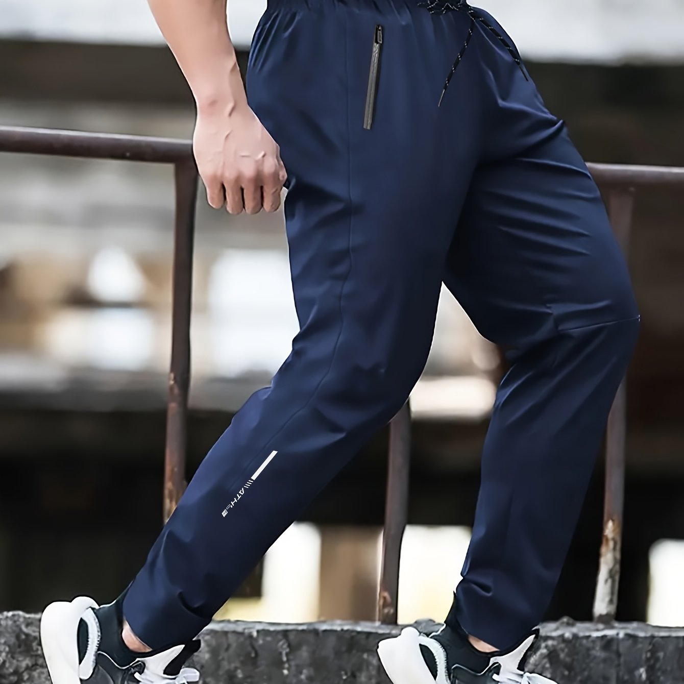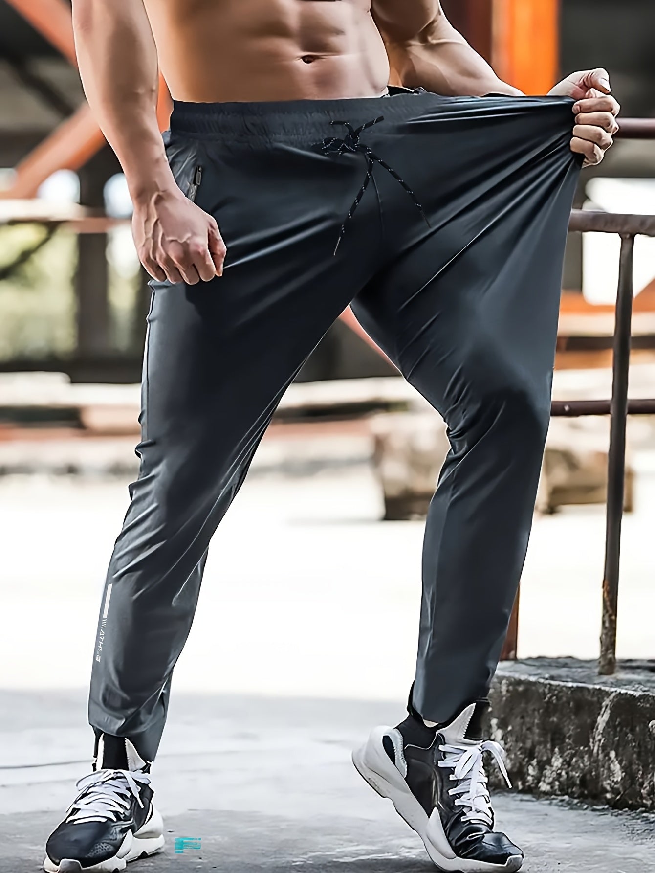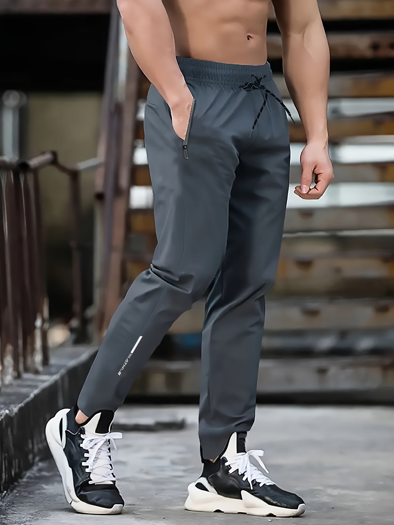 Տղամարդկանց սպորտային տաբատ 1 հատ, արագ-չորացող հյուսված պոլիեսթեր, պատահական մարզասրահ մարզման տաբատ՝ կայծակաճարմանդով, թեթև ձգվող կանոնավոր հարում, գարուն/աշուն սեզոն՝ սև