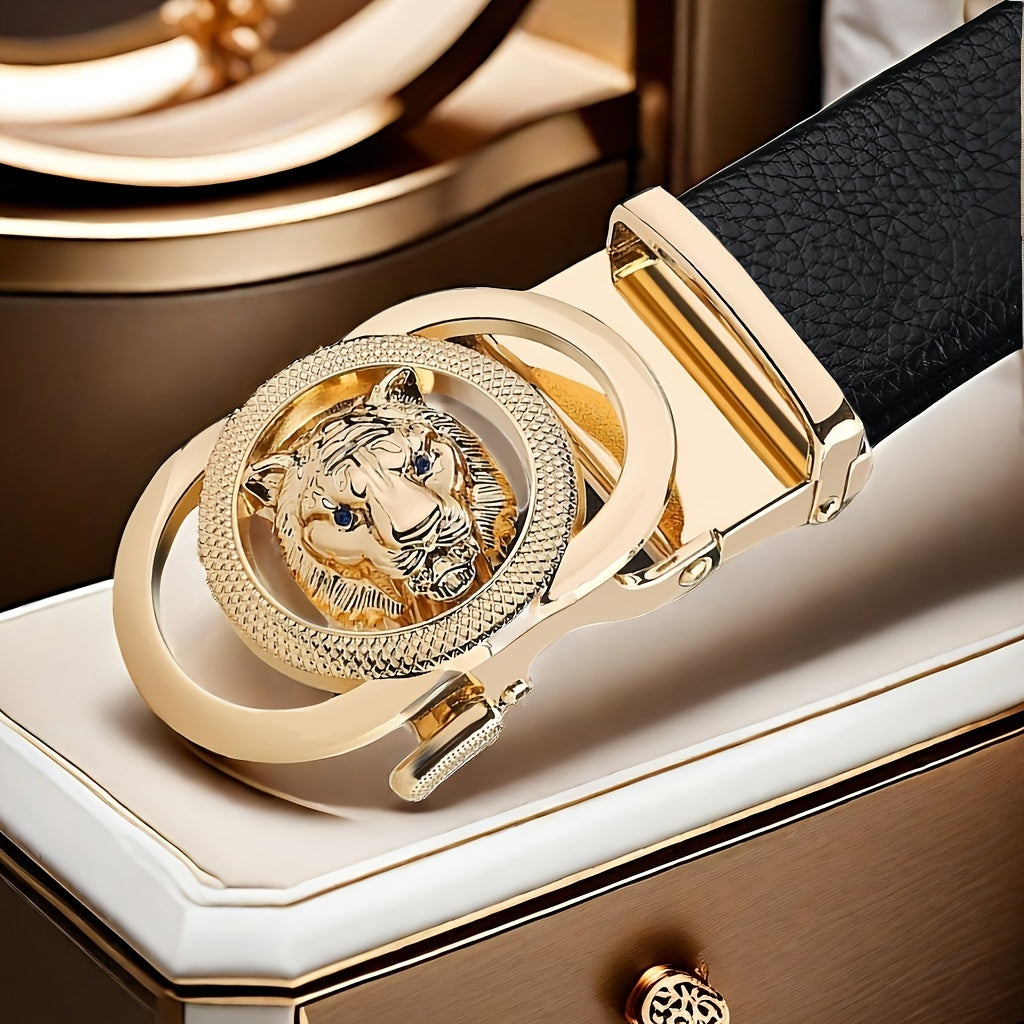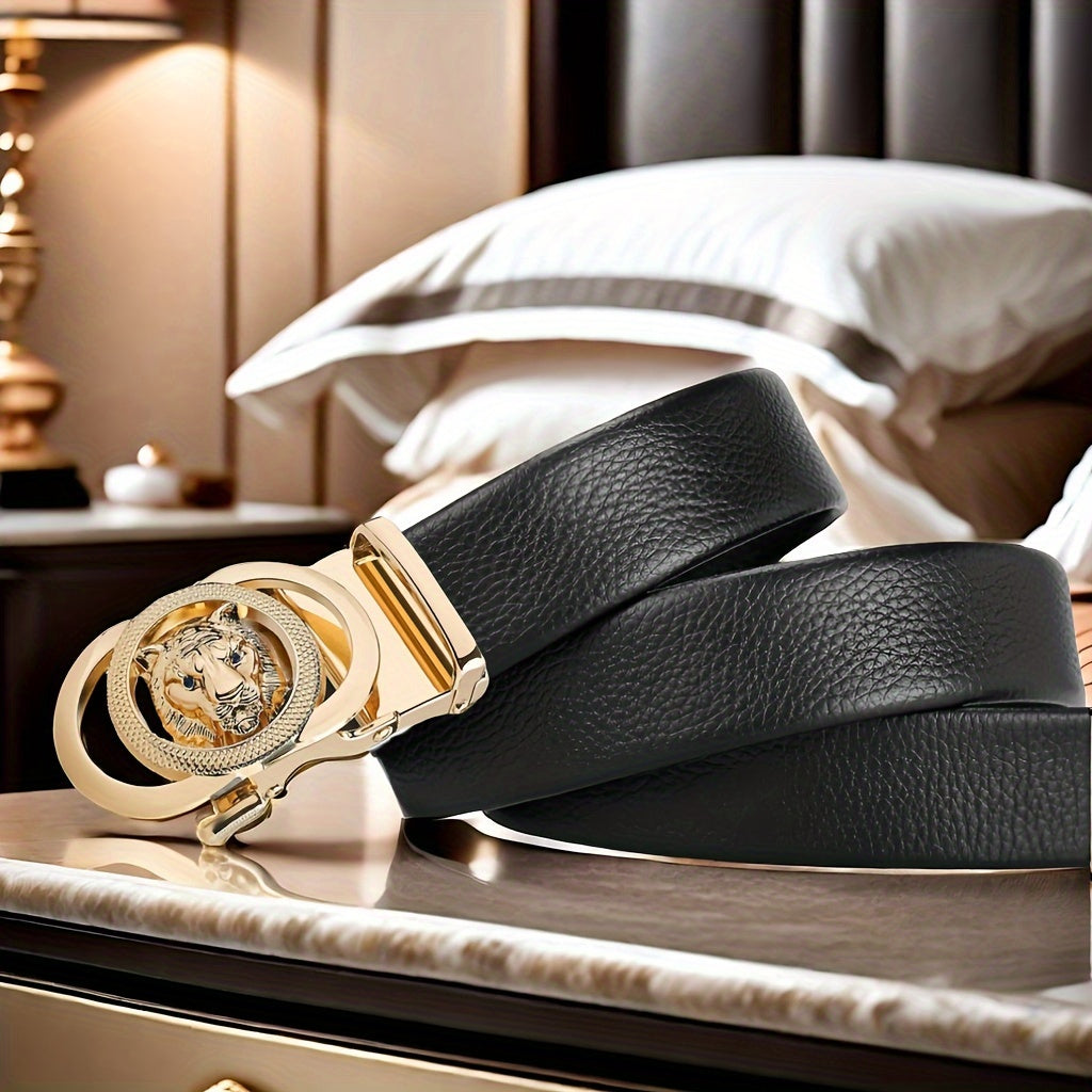1pc Men'S Automatic Buckle Faux Leather Belt - Elegant Black Business Style with Golden-Tone Buckle, Perfect for Weddings, Business, and Casual Wear - Ideal Gift for Husband or Dad, Formal Belt | Sophisticated Belt | Durable