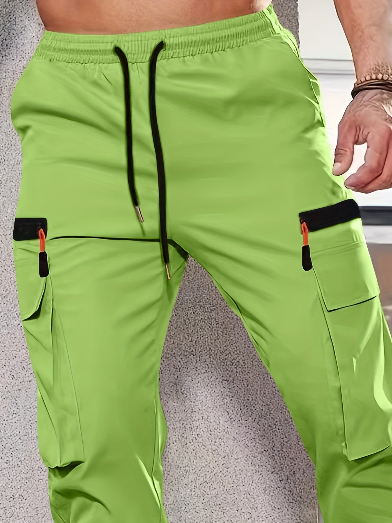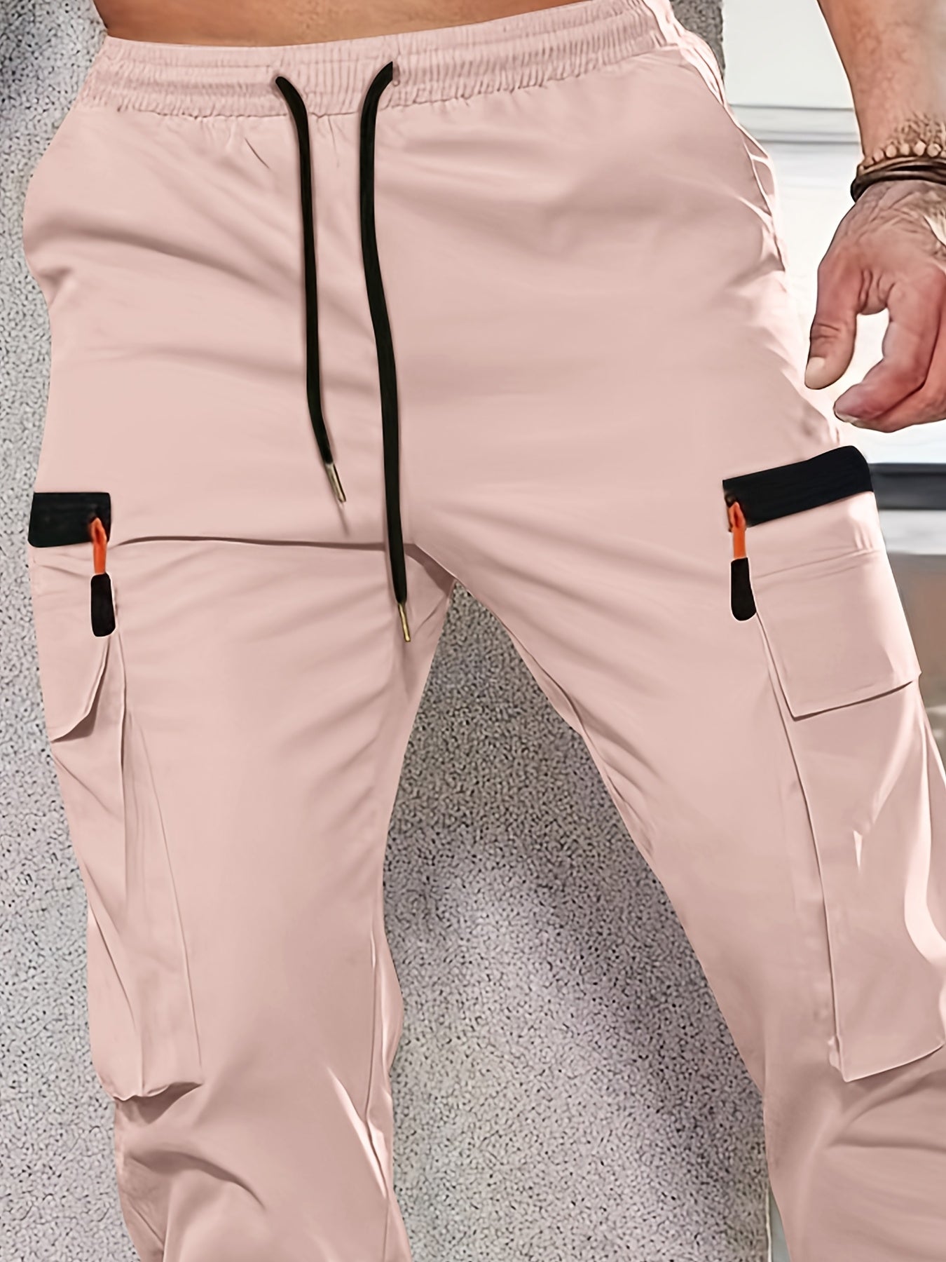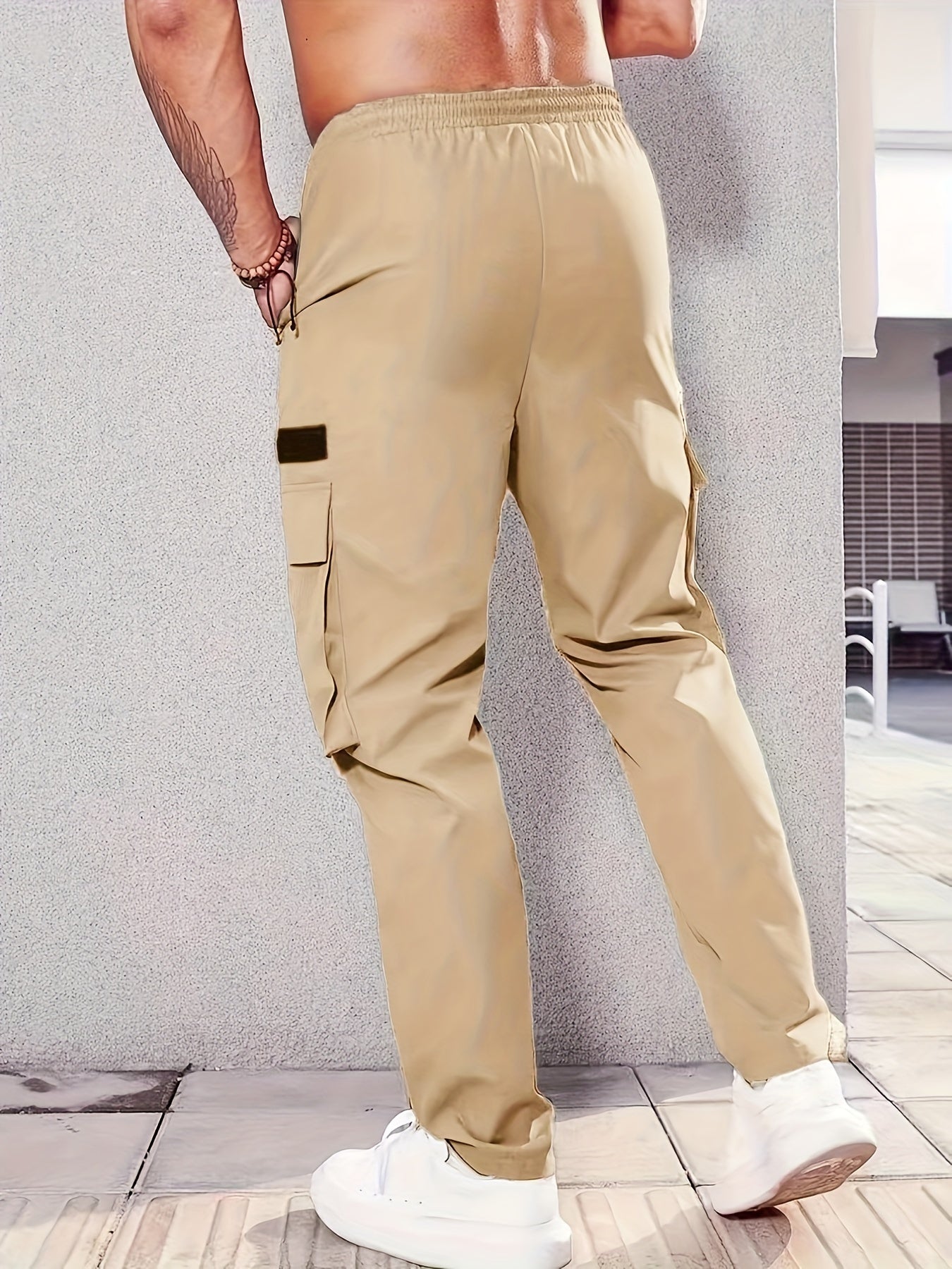 1 հատ Տղամարդկանց նորաձև բեռնատար տաբատ, պինդ գույնի պոլիեսթեր չձգվող գործվածք, բոլոր սեզոնային կանոնավոր պիտանի՝ բազմաթիվ գրպաններով, հյուսված ուղիղ տաբատ՝ սպորտի և ժամանցի համար