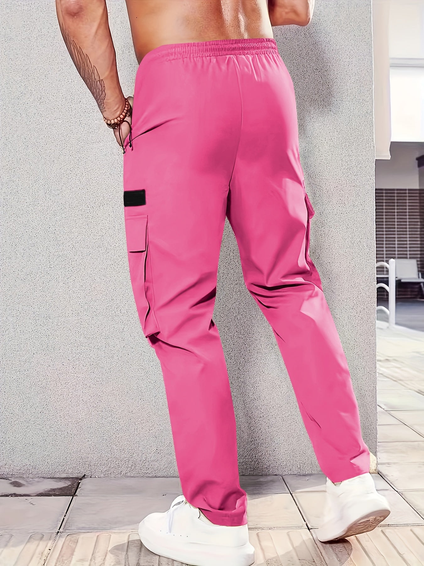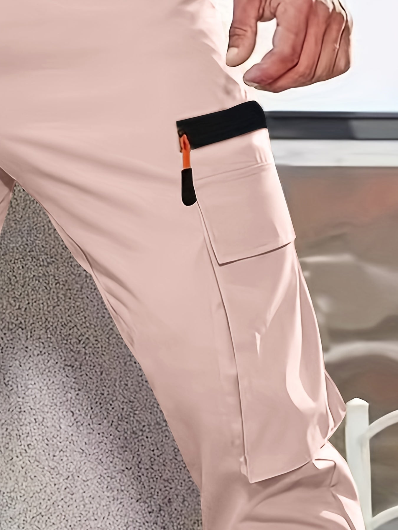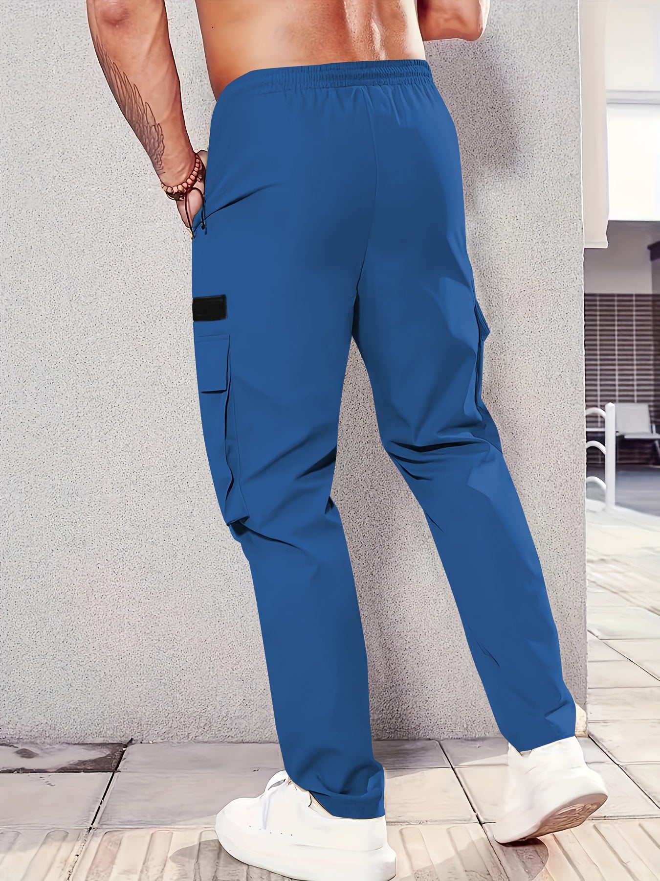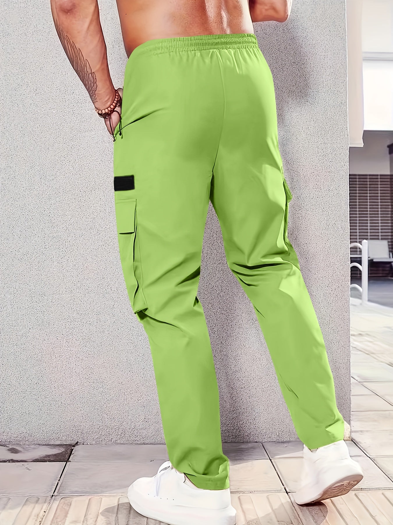 1 հատ Տղամարդկանց նորաձև բեռնատար տաբատ, պինդ գույնի պոլիեսթեր չձգվող գործվածք, բոլոր սեզոնային կանոնավոր պիտանի՝ բազմաթիվ գրպաններով, հյուսված ուղիղ տաբատ՝ սպորտի և ժամանցի համար